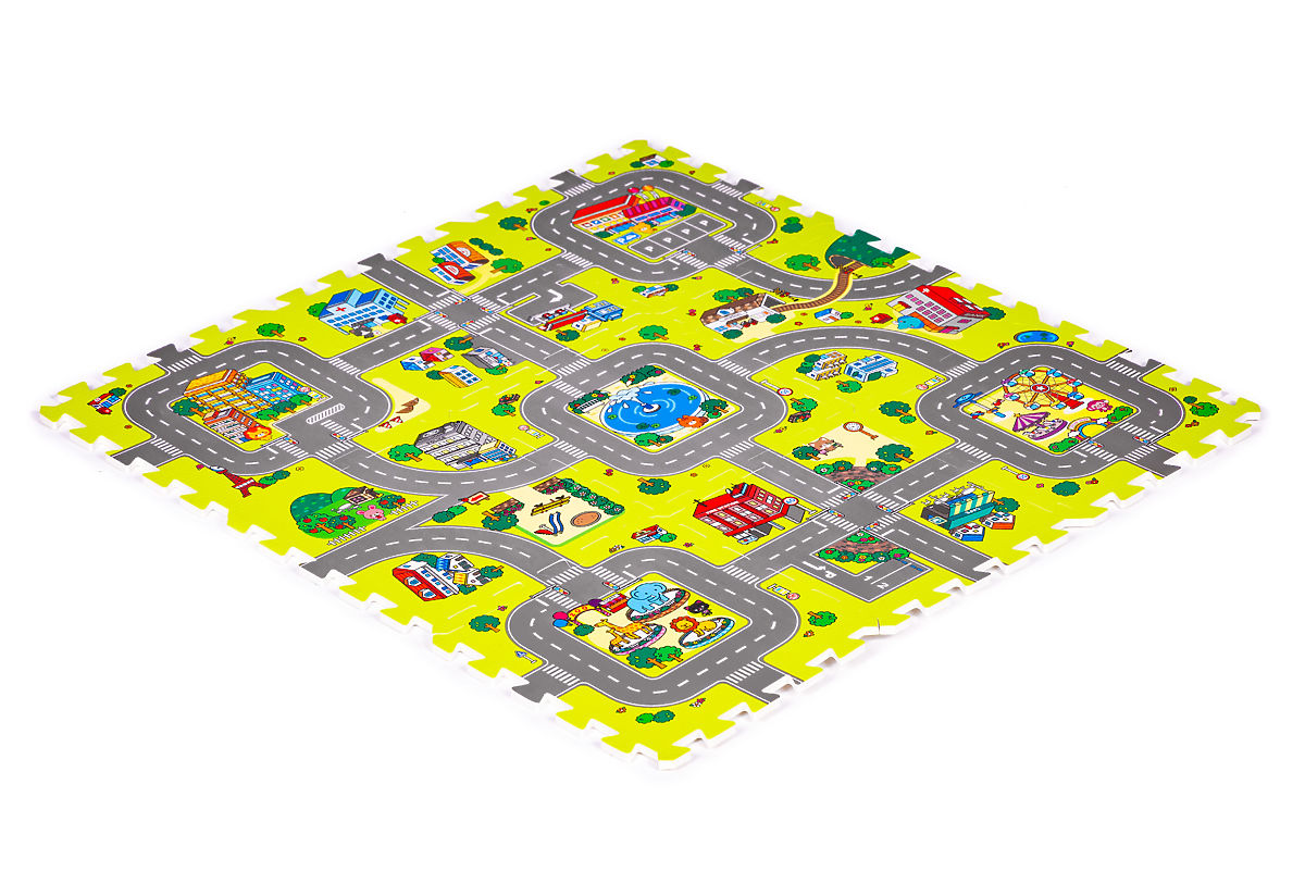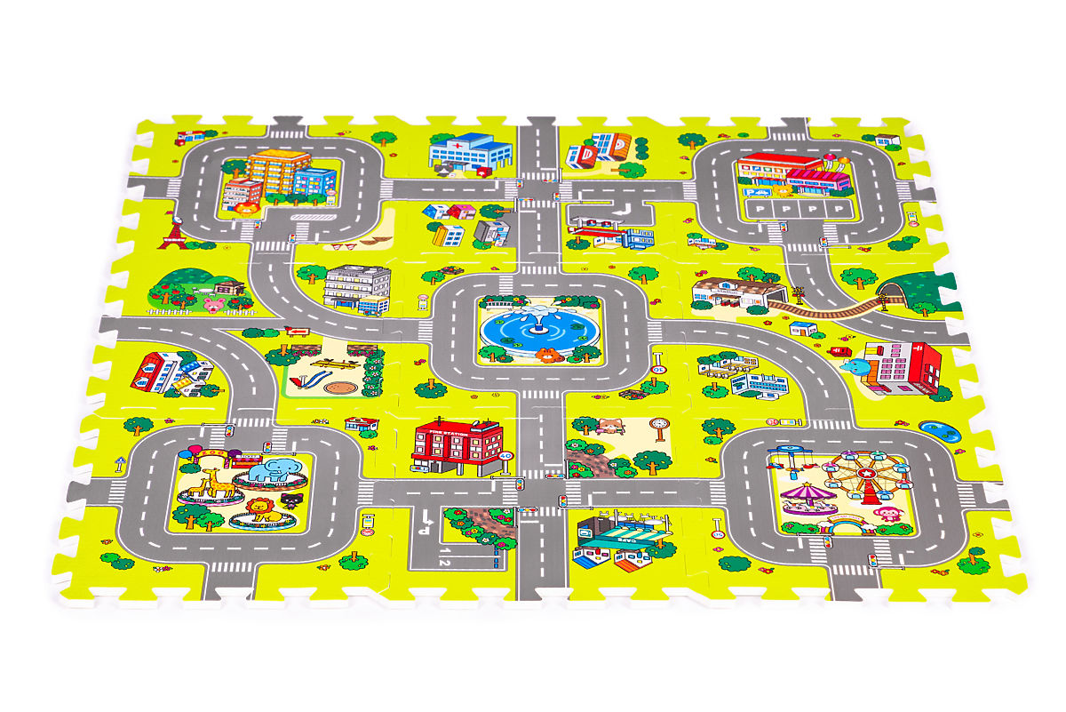 Podložka má vzor mestečka, ciest a ulíc. Vďaka tomu poskytne kreatívnu a skvelú formu zábavy malým milovníkom autíčok a vozidiel. Každý detail má výrazné farby a je starostlivo navrhnutý, aby povzbudil deti k objavovaniu a interakcii. Môže tiež slúžiť na učenie chôdze, lezenie, odpočinok alebo ako pikniková deka.
