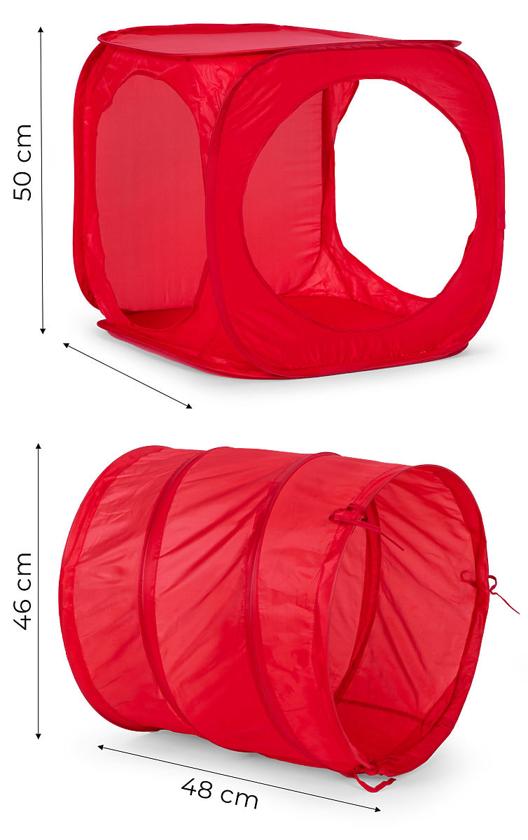 Každý stan má 3 otvory, ku ktorým je možné pripojiť tunely. Vďaka tomu vaše dieťa kreatívne spojí ďalšie kompozície a zvyšné vstupy poslúžia ako okienka a zabezpečia ventiláciu v celej konštrukcii. Veľkou výhodou tejto sady je samorozkladacia konštrukcia, stačí rozviazať zaistovacie pásky a počas 2 sekúnd sa stan sám rozloží. Vďaka tomu nemusíte tráviť čas zdĺhavým spájaním konštrukčných prvkov, počas niekoľkých sekúnd ste schopní rozložiť všetky prvky sady a spojiť ich do ľubovoľnej konštrukcie.