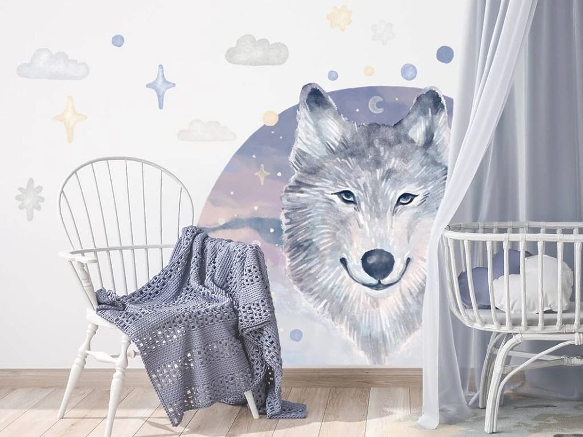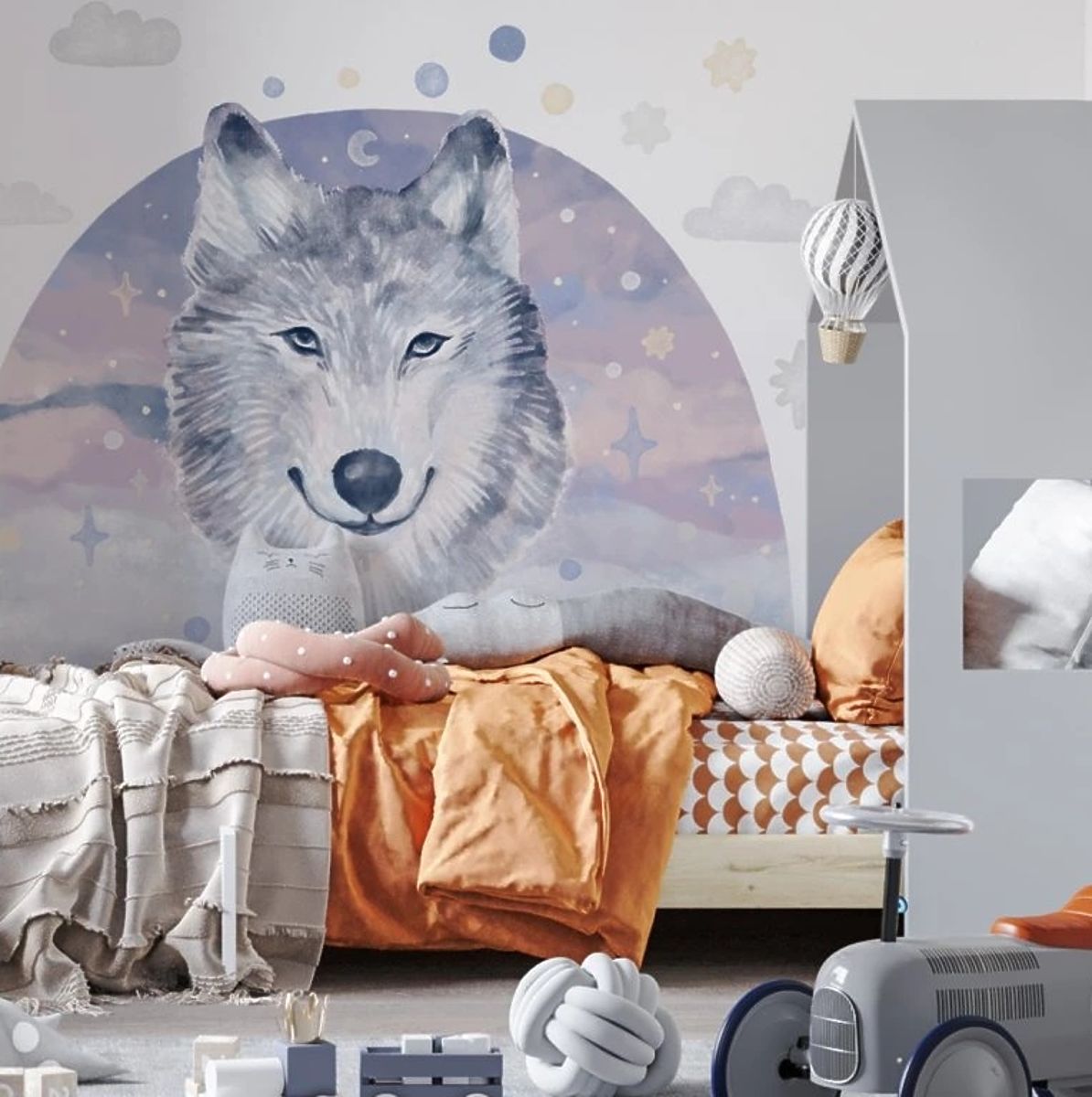 Originálna nálepka s vlkom na dúhovom pozadí dodá priestoru jemnosť, hravosť aj štýl. Tlmené dúhové farby ladia s moderným interiérom a vytvárajú pokojné, útulné prostredie pre malých snílkov aj dobrodruhov.