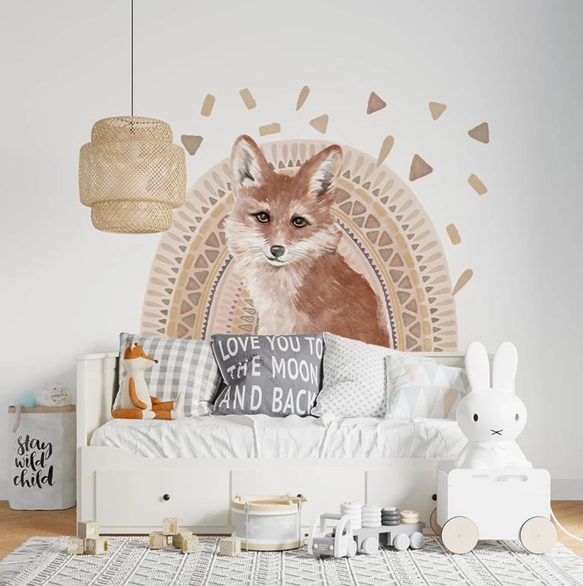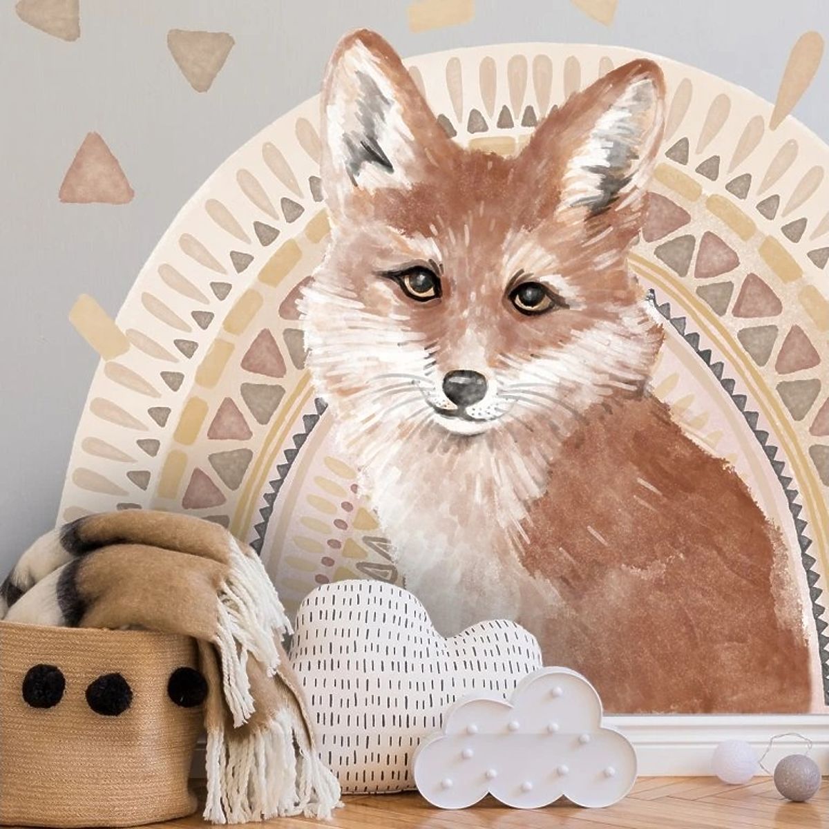 Nálepka s líškou na dúhovom pozadí pre útulný detský priestor. .. viac