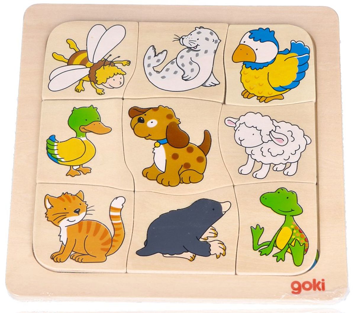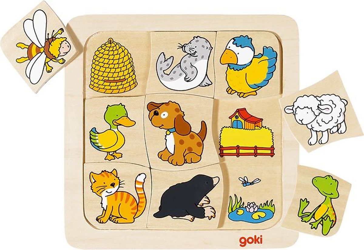 Drevená skladačka zábavným spôsobom učí rozpoznávať vzťahy medzi obrázkami.