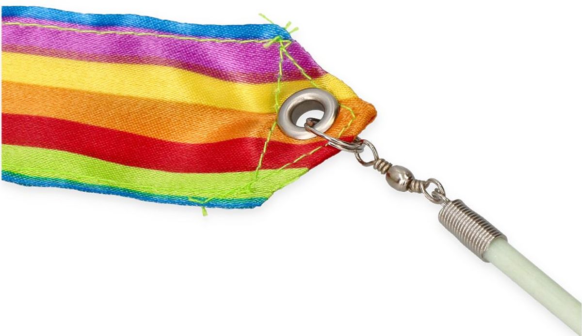 Predstavovaná gymnastická stuha má dúhový, viacfarebný vzor, ktorý priťahuje pozornosť počas hry a krásne sa rozmazáva, čo umožňuje dieťaťu s radosťou vytvárať nové zostavy, ktoré okrem množstva zábavy pomáhajú rozvíjať aj jeho obratnosť a rovnováhu. Jej prevedenie si zaslúži najvyššie uznanie – odolná konštrukcia zaručuje, že úchyt sa pri rôznych evolúciách nezničí a stuha je odolná proti oderu, čo sa môže stať pri náhodnom údere do steny. Je tiež úplne bezpečná pre najmenších, pretože neobsahuje žiadne drobné časti a je označená všetkými potrebnými bezpečnostnými certifikátmi, ako poľskými, tak európskymi.