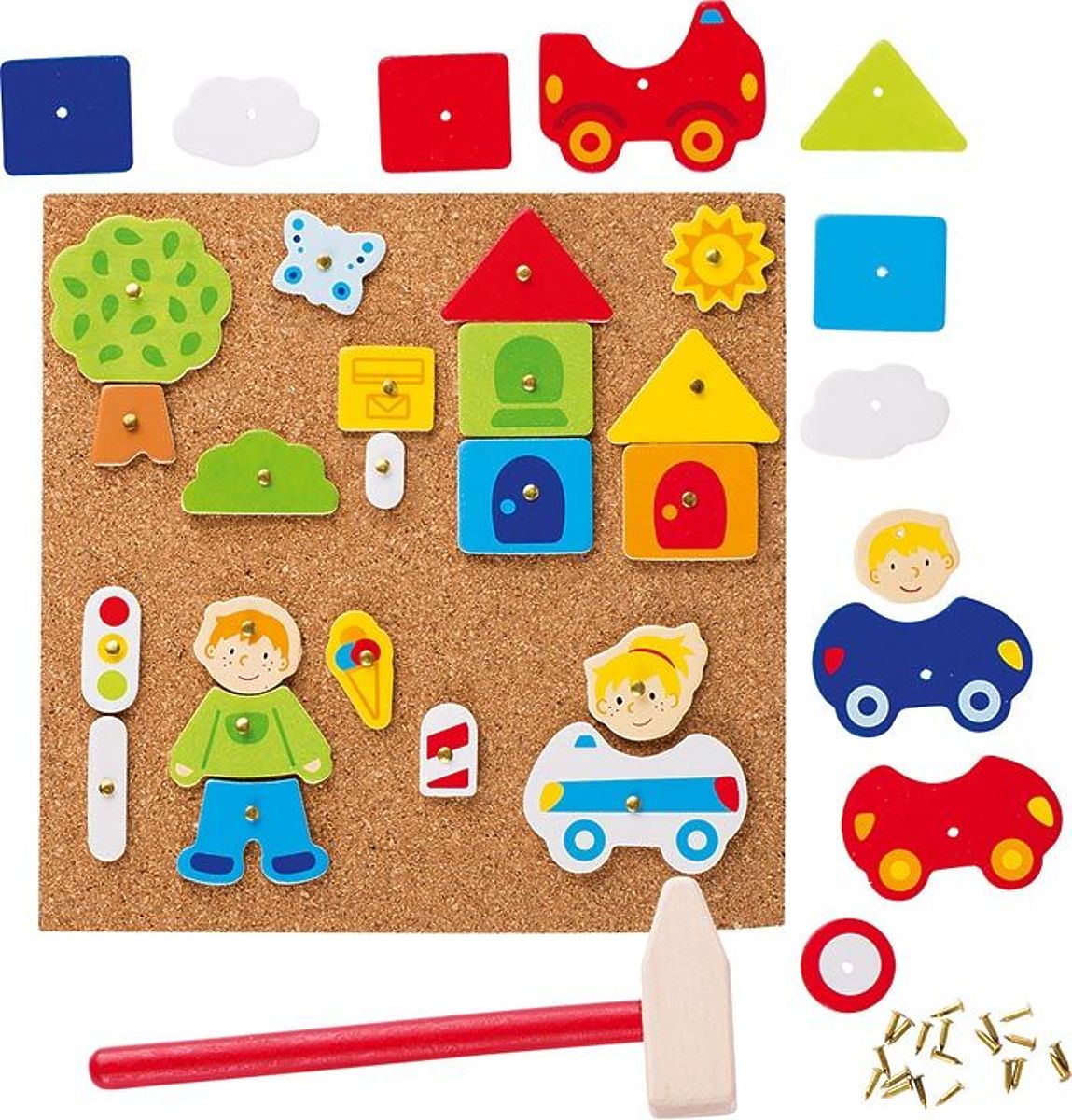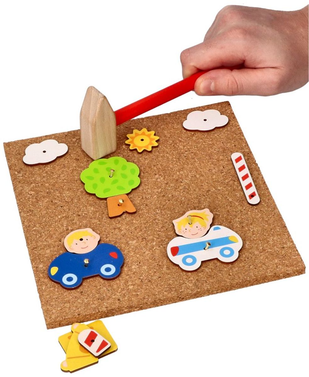 Korková zatĺkacia hra mesto je skvelou voľbou pre rodičov, ktorí chcú rozvíjať manuálne zručnosti a obratnosť prstov svojich ratolestí. Stačí vybrať nejaký tvar a pribíjať ho na korkovú dosku tak, aby vznikol obrázok. Dieťa vďaka svojej fantázii môže vytvárať úžasné príbehy o meste a jeho obyvateľoch.