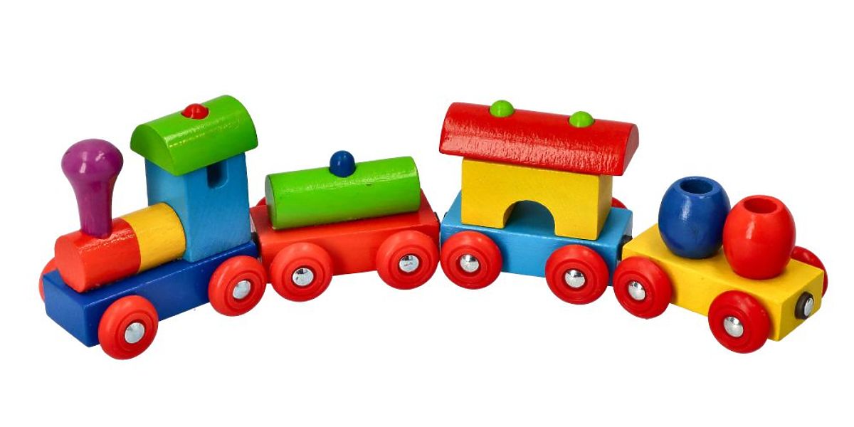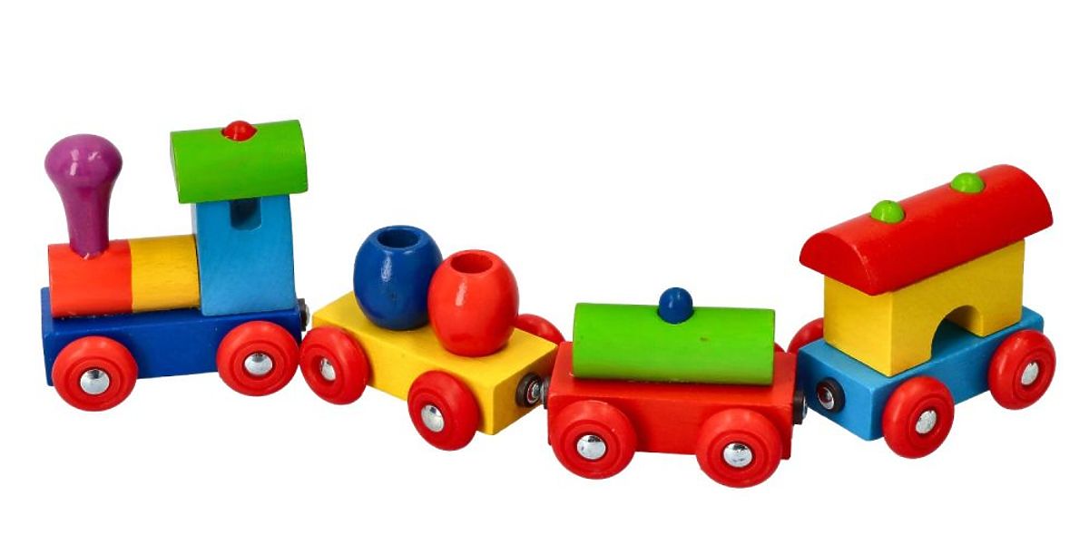 Vlak sa skladá z lokomotívy a 3 vagónikov spojených magnetmi. Celý vlak je kúzelne farebný. Navyše pre spestrenie každý vagónik vezie iný náklad, vďaka čomu sa dieťa môže zoznámiť s rozmanitosťou tvarov a farieb.