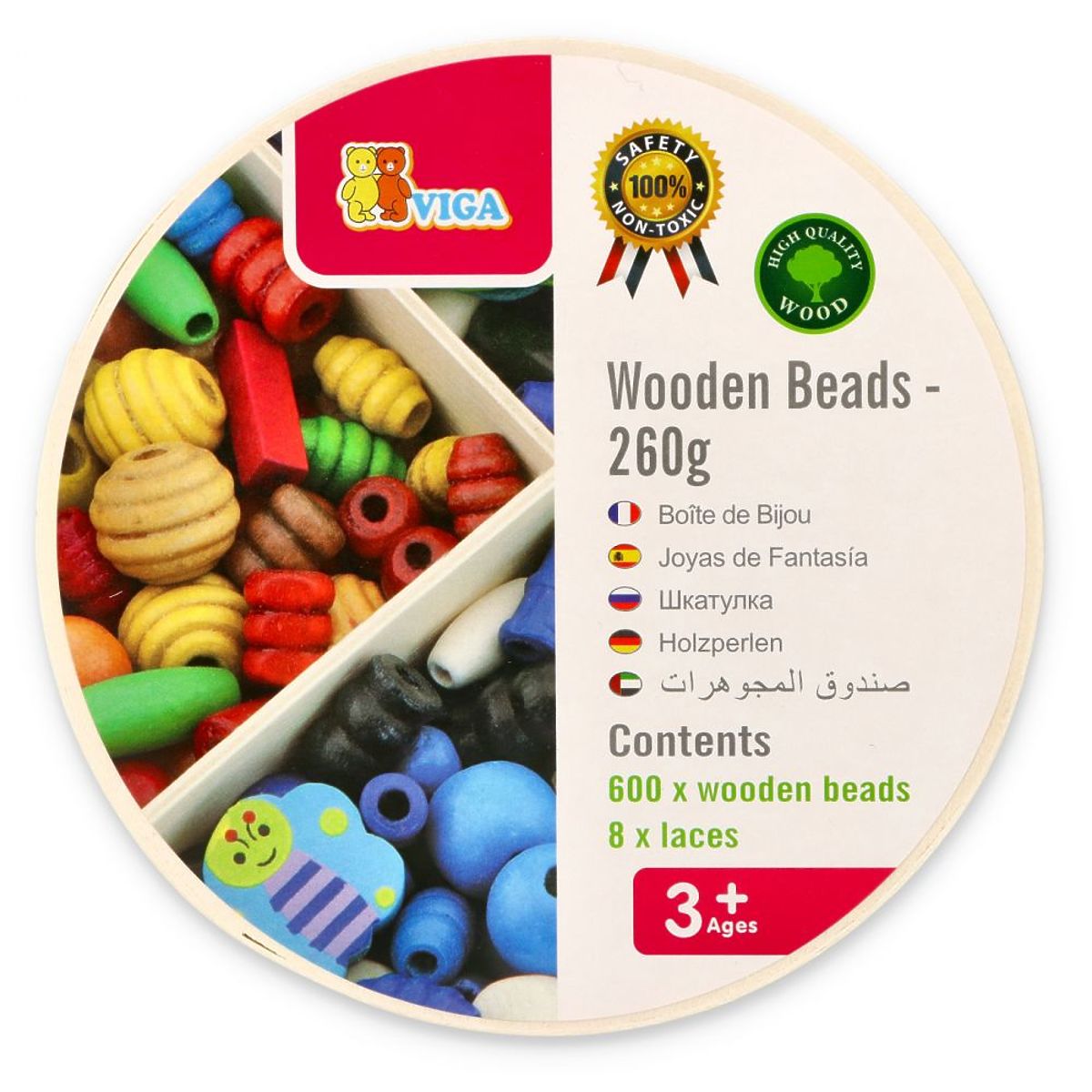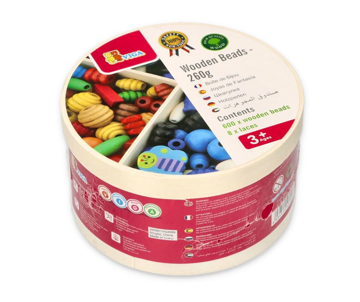 Celá sada je vyrobená z lakovaného dreva a zabalená v krabičke. Korálky v mnohých fantastických tvaroch a farbách, z ktorých si každý nájde niečo pre seba. Môžete z nich vytvárať náhrdelníky, náramky a ďalšie ozdoby, ako napríklad prívesky, podľa vlastných preferencií alebo kreácií.