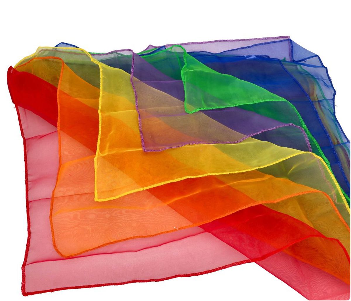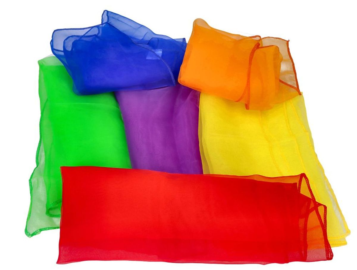 Predstavujeme sadu farebných šatiek pre pohybové hry. Jemne lesklé šatky v šiestich farbách dúhy sú ideálne na hádzanie, učenie sa žonglovania a ďalšie pohybové hry. Môžete sa s nimi hrať mnohými rôznymi spôsobmi.