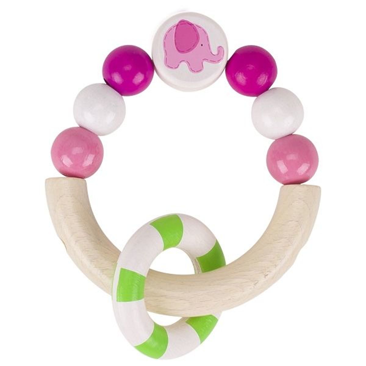 Drevená hrkálka s ružovým sloníkom pre malé deti. .. viac