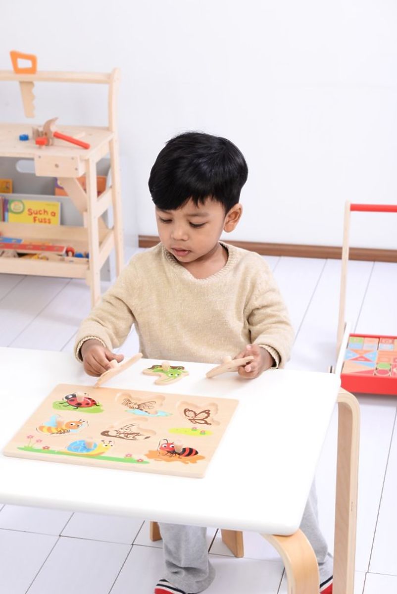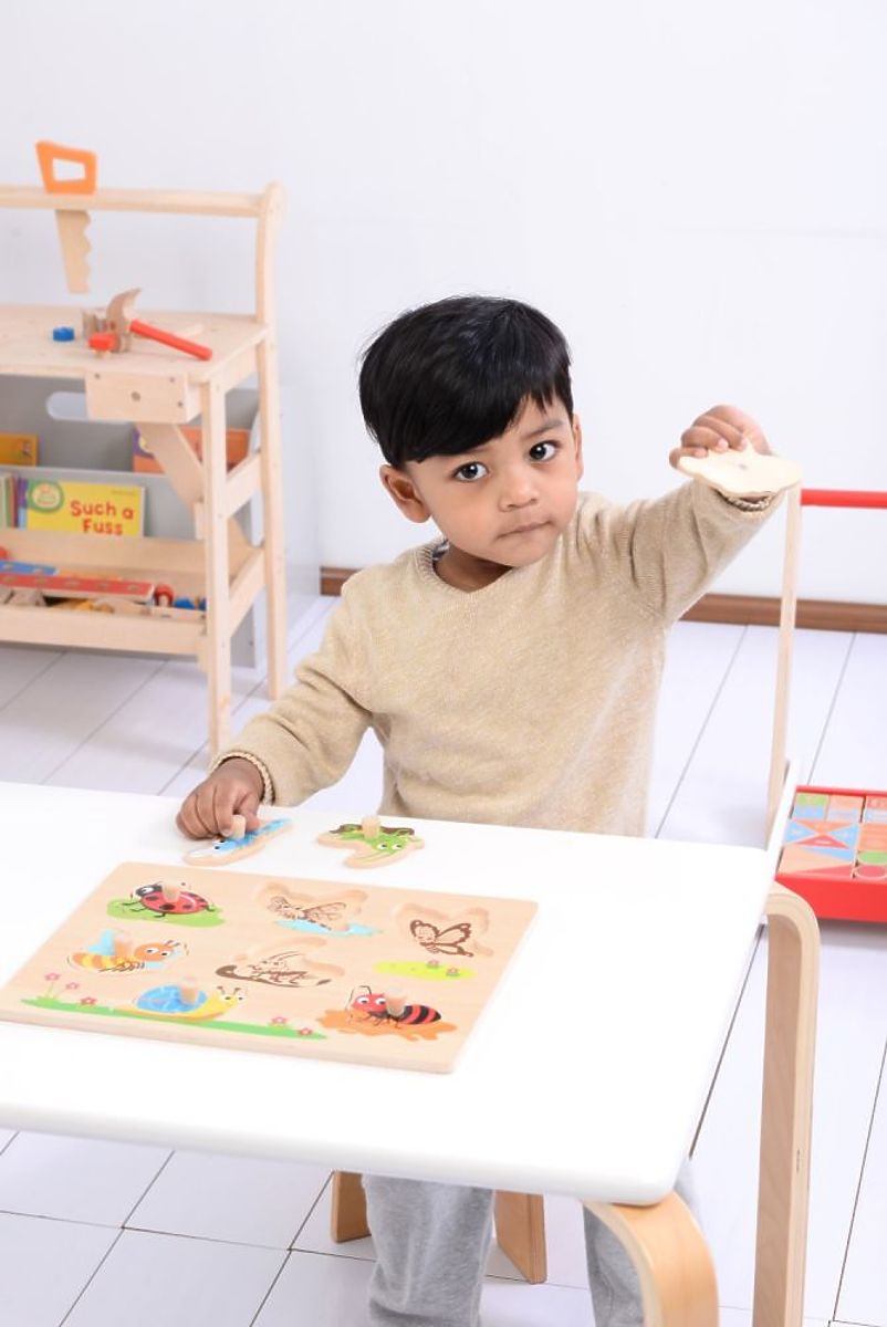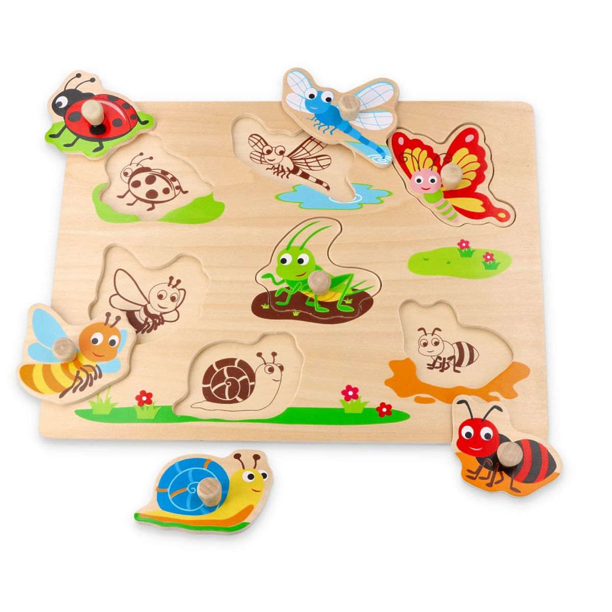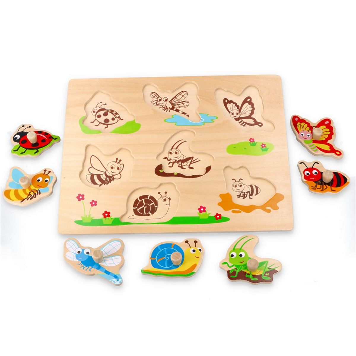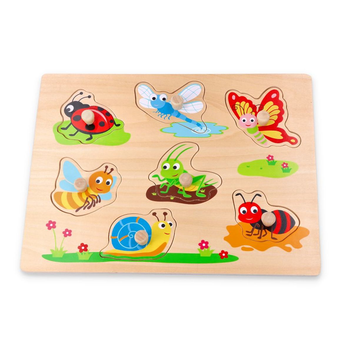 Skladačka je vyrobená z prírodného dreva a obsahuje 7 veselých chrobáčikov pre všetky zvedavé deti. Nájdete tu: lienku, vážku, motýľa, včelu, kobylku, slimáka a mravca.