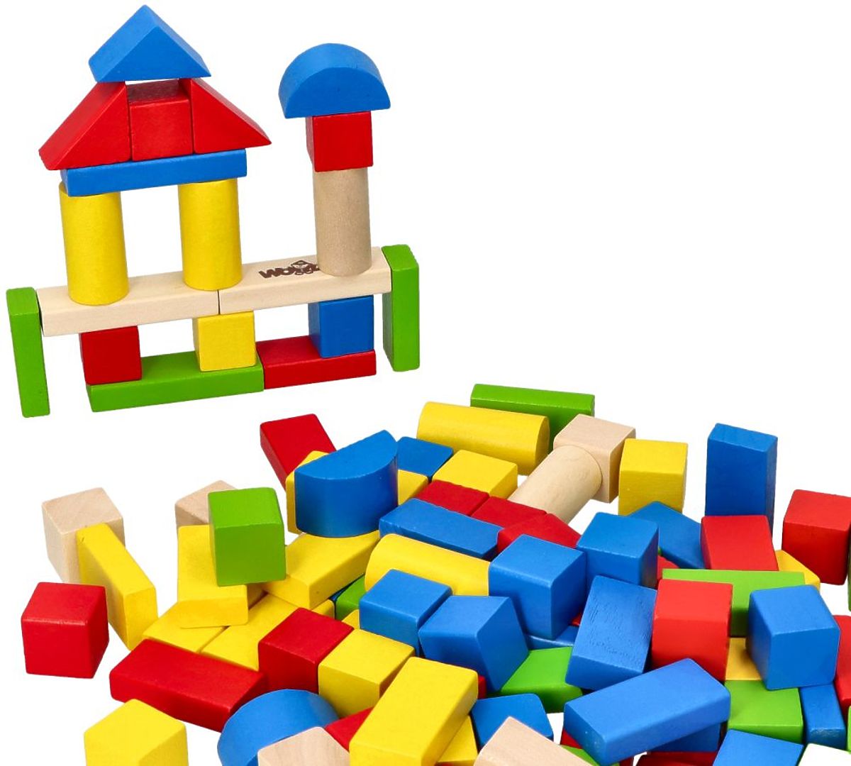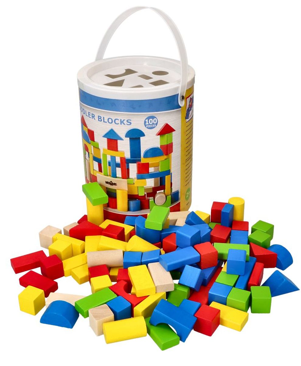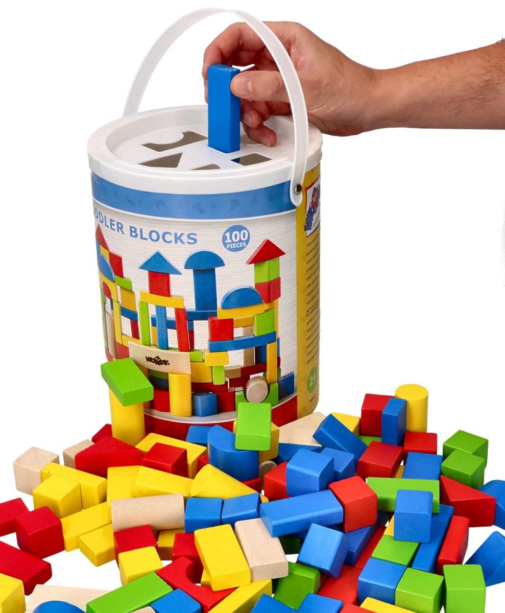 Drevené kocky sú hračkou na každú príležitosť. Tu je sada kociek balená v praktickom vedre s triedičom. Farebných kociek je až 100 kusov!