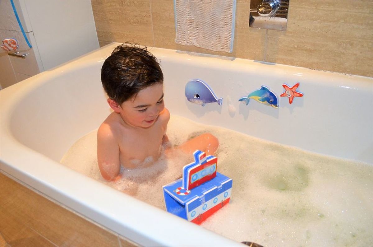 Vďaka špeciálnej pene, z ktorej sú prvky sady vyrobené, sa po namočení vodou prilepia na vaňu, dlaždice alebo sklo. Dieťa ich môže ľubovoľne usporiadať počas kúpeľa a stále znova vytvárať krajinu v kúpeľni. Skvelá zábava zaručená. Prvky sa nepotopia, takže si s nimi môžete hrať aj na hladine vody.