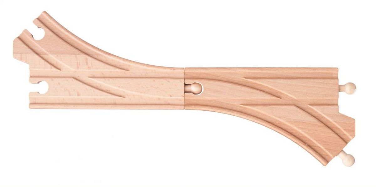 Dva drevené prvky po spojení tvoria veľkú výhybku v tvare písmena "K". Je to ďalší zaujímavý návrh na rozšírenie vašich železničných súprav. Hodí sa na vytváranie križovatiek a spojí dve koľaje na každej strane výhybky. Práve takéto výhybky a spojenia robia hru s vláčikmi takou pútavou. Vďaka rôznorodým častiam budú vaše koľaje zakaždým iné a deti budú mať možnosť vytvárať stále nové kombinácie. Sada obsahuje dve drevené výhybky, ktoré možno spájať do výhybky K alebo ľubovoľne spájať s vašimi koľajami dohromady alebo samostatne.