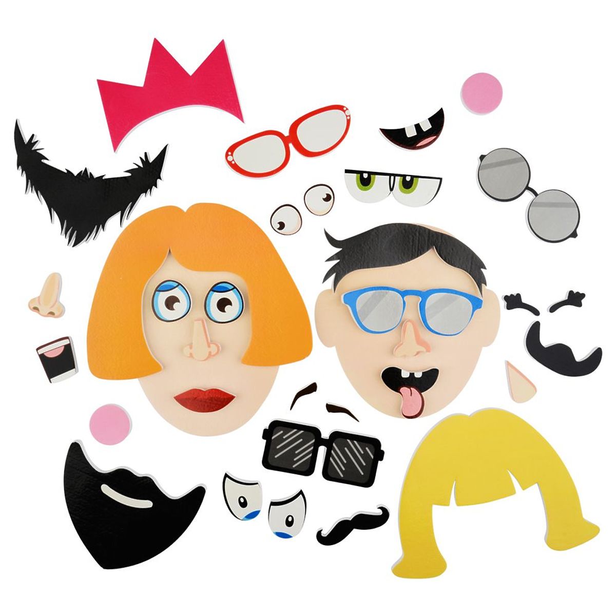 Táto sada umožňuje vytvárať vtipné a bláznivé tváre. Každýkrát môže vyzerať inak. V sade nájdete základ (tvár) a prvky pre neustálu zmenu jej vzhľadu, ako sú: oči, nosy, vlasy, fúzy, ústa a ďalšie prvky, ako napríklad okuliare. Celkovo to zaisťuje, že zábava nie je nudná, pretože ponúka stále nové možnosti vymýšľania inej postavy. Stačí zmeniť jeden prvok a celok sa zmení.