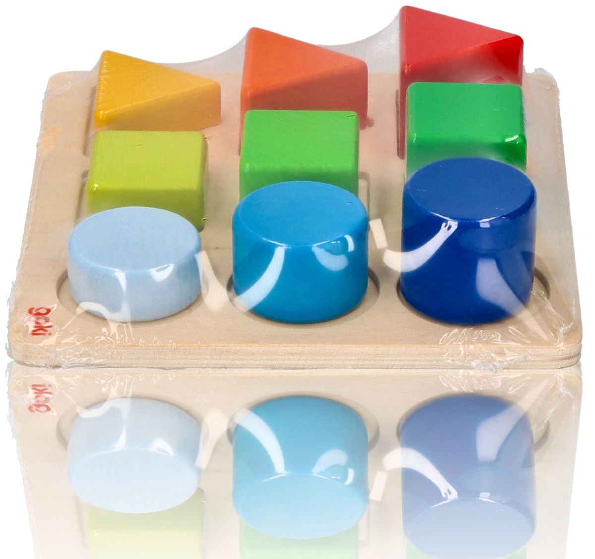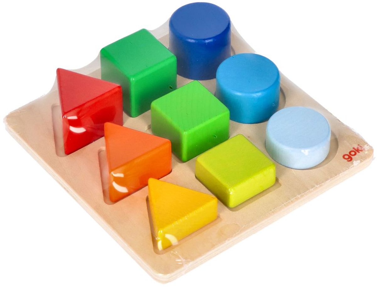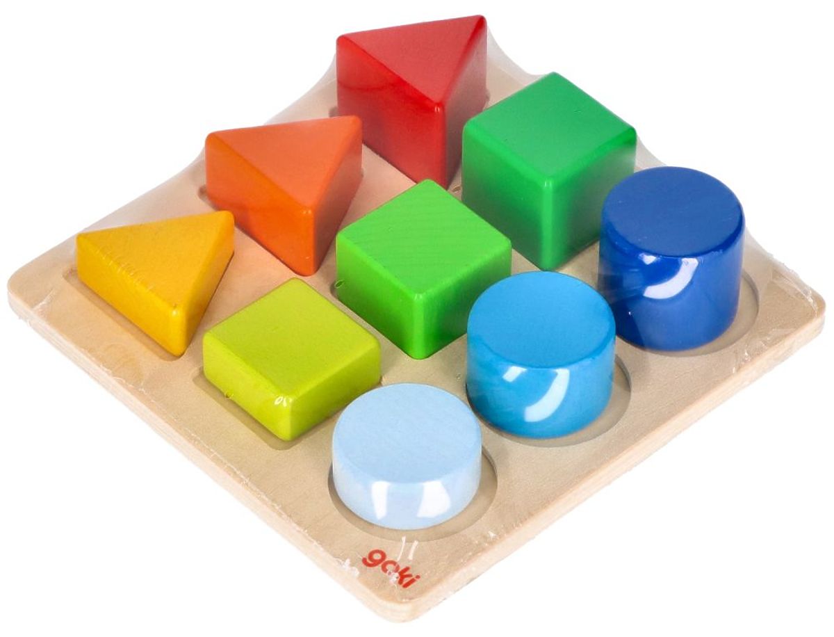 Medzi kockami nájdeme geometrické tvary: štvorec, trojuholník a kruh v troch farbách. Farby sú usporiadané tak, aby najnižšia kocka bola najsvetlejšia a najvyššia najtmavšia, čo opticky úlohu trochu uľahčuje a zároveň ju robí atraktívnejšou. Rozmery podstavca: 14,5 x 14,5 cm Vek: 1+ Referencie: 58753 Vyhlásenie o zhode CE