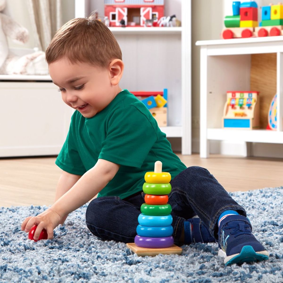 Hračka výborne rozvíja koordináciu ruka-oko a zlepšuje motoriku malých detských rúk. Pre malé dieťa nie je jednoduché trafiť krúžok na tyč. Aby vznikla pekná pyramída, je potrebné skladať krúžky podľa veľkosti od najväčšieho po najmenší.