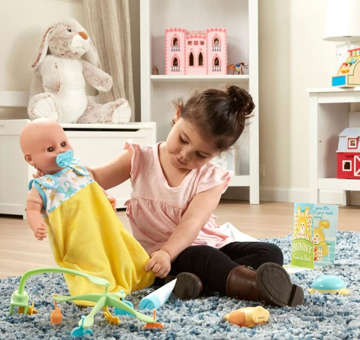 Hra na role je jednou z najobľúbenejších. Teraz sa dieťa môže cítiť ako dospelý a postarať sa o bábiku alebo medvedíka. Jednou zo základných povinností opatrovateľa je uspať dieťa. Je to jednoduché? Čo nám v tom môže pomôcť? Takáto súprava nie je len zábavou, ale aj učením empatie a spolucítenia, čo sú dôležité sociálne zručnosti. Táto hračka je tiež vhodná, keď sa rodina rozrastá a je potrebné pripraviť dieťa na to, čo sa stane.