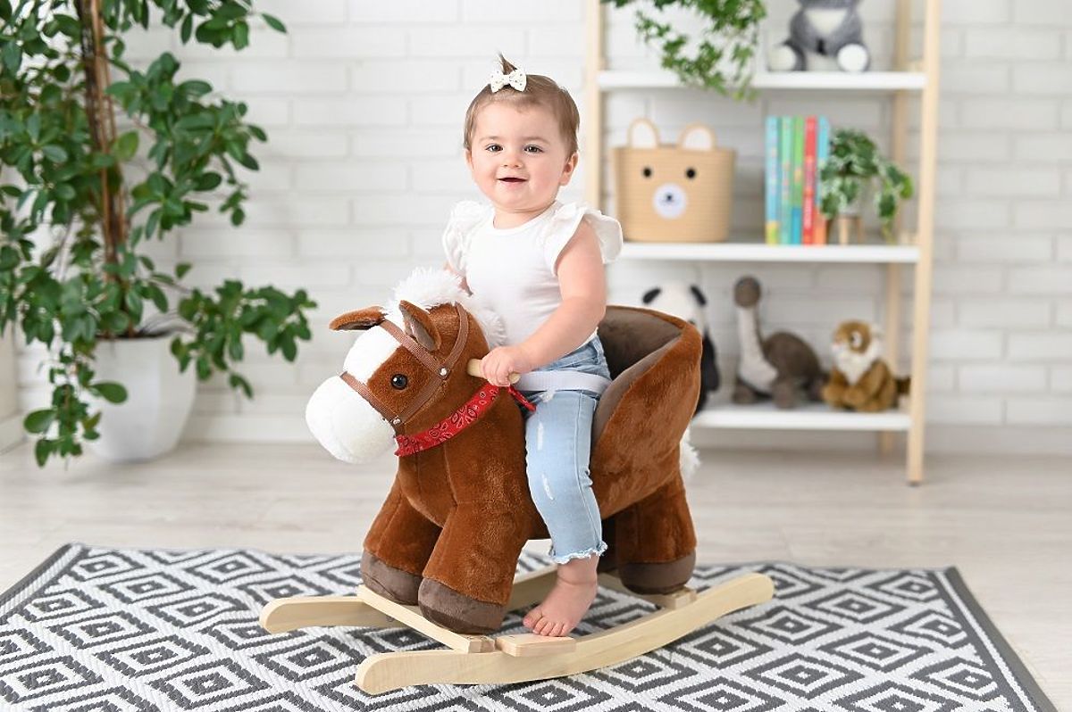 Krásny tradičný hojdací koník s kolieskami, na maznanie, na milovanie ;-) Táto tradičná hračka je tiež prvým priateľom a spoločníkom hier. Koník s kresielkom je hračka určená pre mladšie deti, pre ktoré by tradičný koník nebol bezpečný. Teraz sa vďaka prídavnému pásu môžu hojdať deti už od 10. mesiaca.