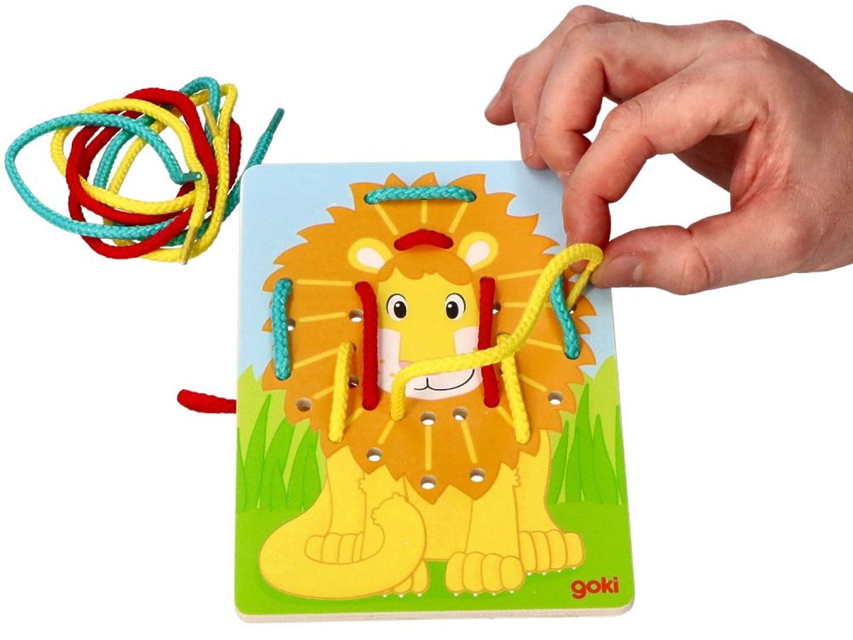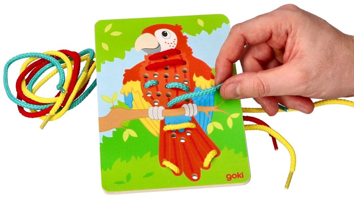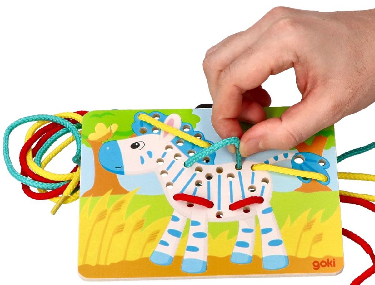 Celá zábava spočíva v prevliekaní farebných šnúrok cez otvory v drevenej základni. Stačí použiť trochu fantázie a vykúzliť nádherný a originálny vzor! Hra s touto prevliekačkou bude skvelým spestrením kreslenia alebo maľovania. Je to ďalšia aktivita, ktorá podporuje manuálny rozvoj malého človeka, a okrem toho učí logickému mysleniu, trpezlivosti a rozvíja koordináciu zraku a pohybu.