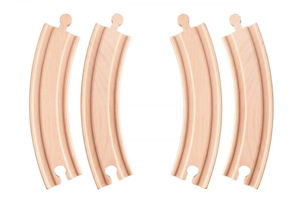 V tejto sade obdržíte 4 drevené zákruty, ktoré sú kompatibilné s vláčikodráhami a príslušenstvom okrem iného značiek ako: BigjigsRail, Brio, IKEA, ELC, Little Steps, Eichhorn, Woodyland, Tesco, Carousel atď. V našom obchode môžete tiež dokúpiť mnoho ďalších prvkov, ktorými možno vláčikodráhu rozšíriť - mosty, žeriavy, koľaje, stanice, ďalšie špecializované vlaky atď.