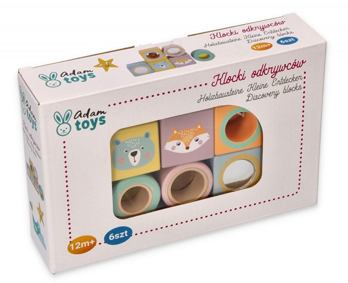 Farebné kocky pre malých objaviteľov sú ideálnou hračkou pre malé deti objavujúce svet. Značka Adam Toys išla o krok ďalej a vytvorila kocky s rôznymi funkciami. Tri z nich majú skryté zvukové prvky a tri z nich vizuálne prvky na pozorovanie.