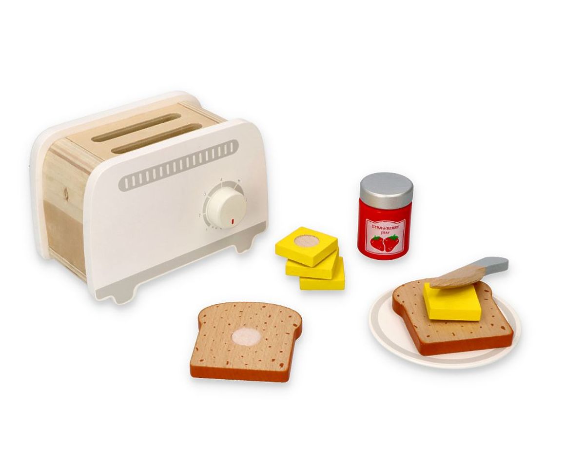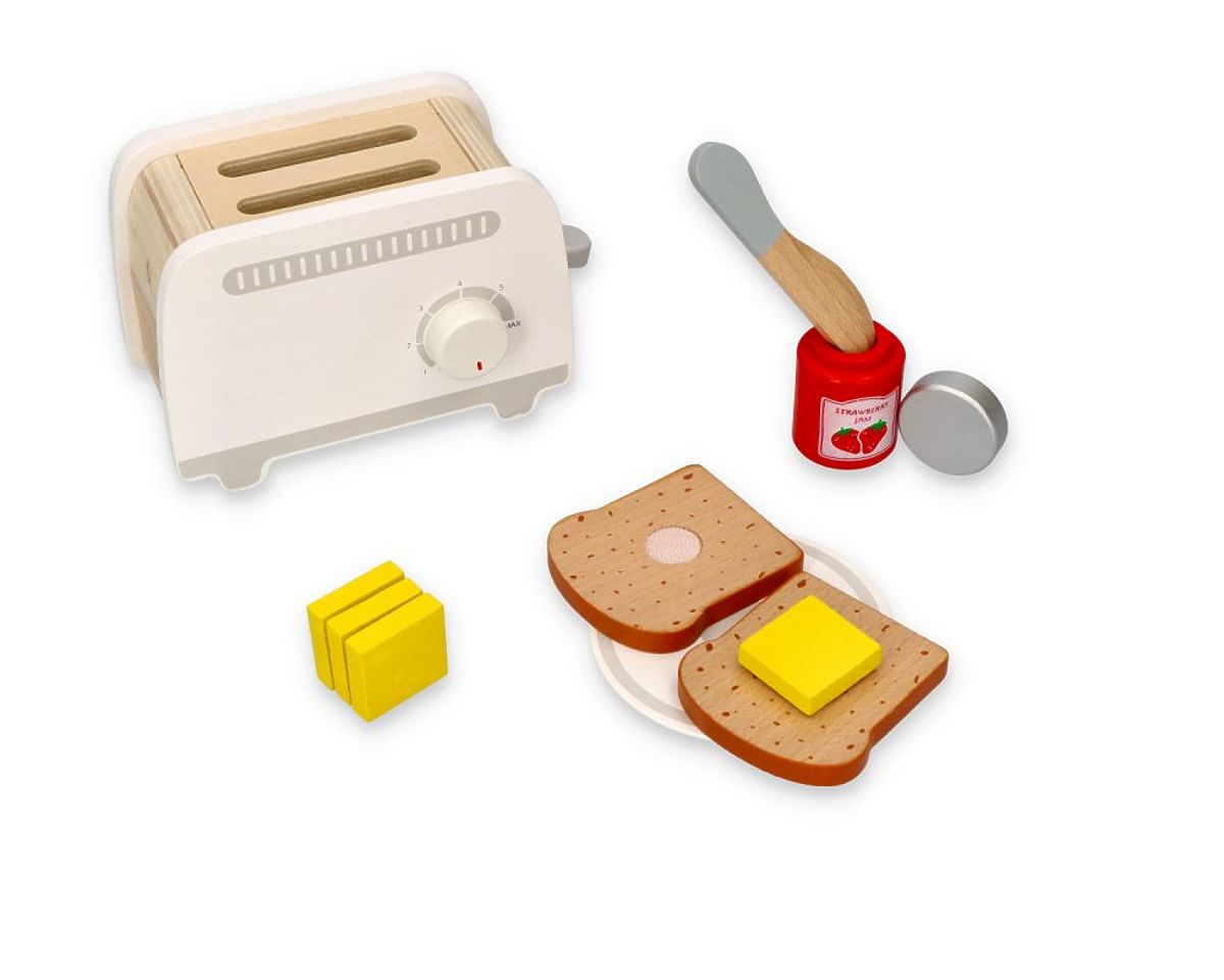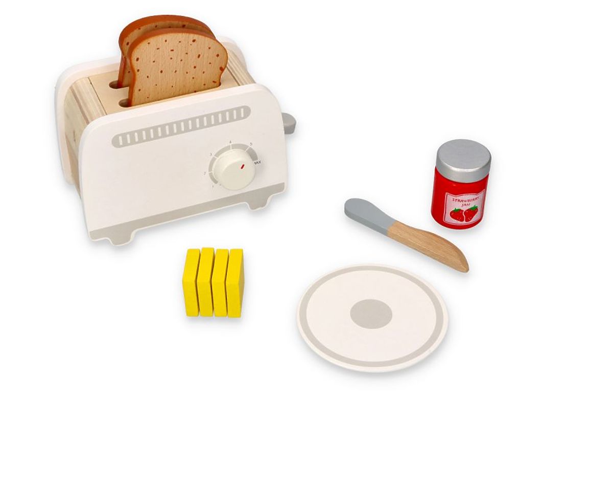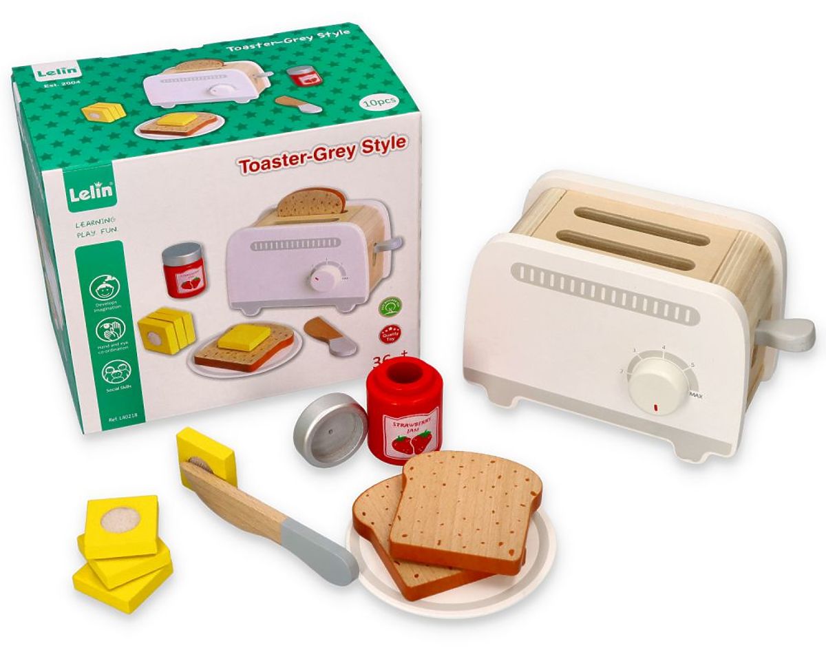 Mňam :) Lahodné toasty sú niečo, čo deti milujú na raňajky. S touto úžasnou sadou si teraz aj vaše ratolesti môžu samy pripraviť hračkové toasty. Teraz hra v kuchyni nemusí byť len o sledovaní, čo robia rodičia, ale o napodobňovaní ich činností bezpečným spôsobom.