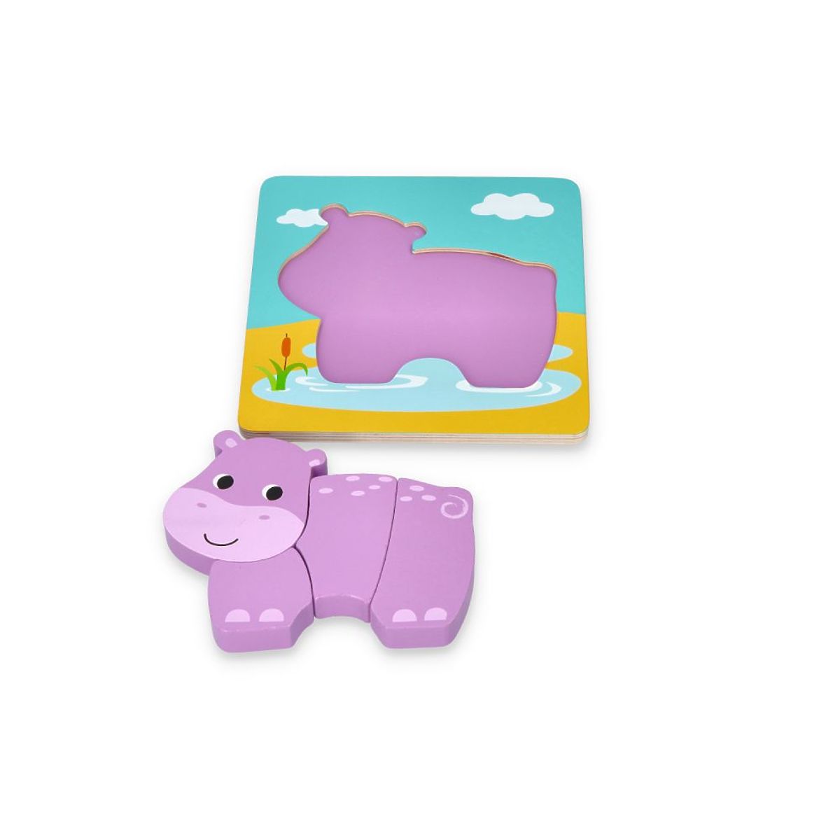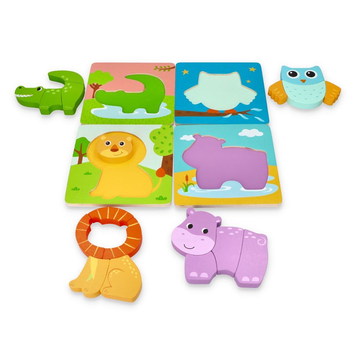 V sade 4 vzory: krokodíl, hroch, sova a lev. Vek: 1+ Rozmery jednotlivých skladačiek: 16,5 x 16,5 cm Referencie: L20224 Vyhlásenie o zhode CE