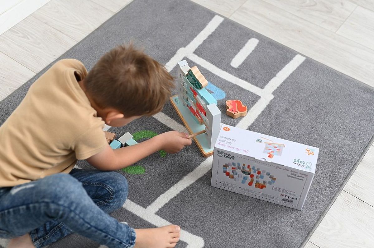 Všetky prvky hry sú vyrobené z dreva, v krásnej, jemnej farebnosti.