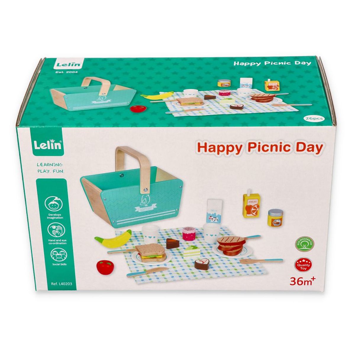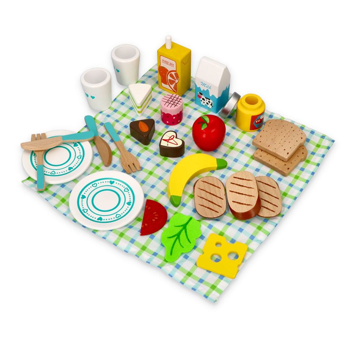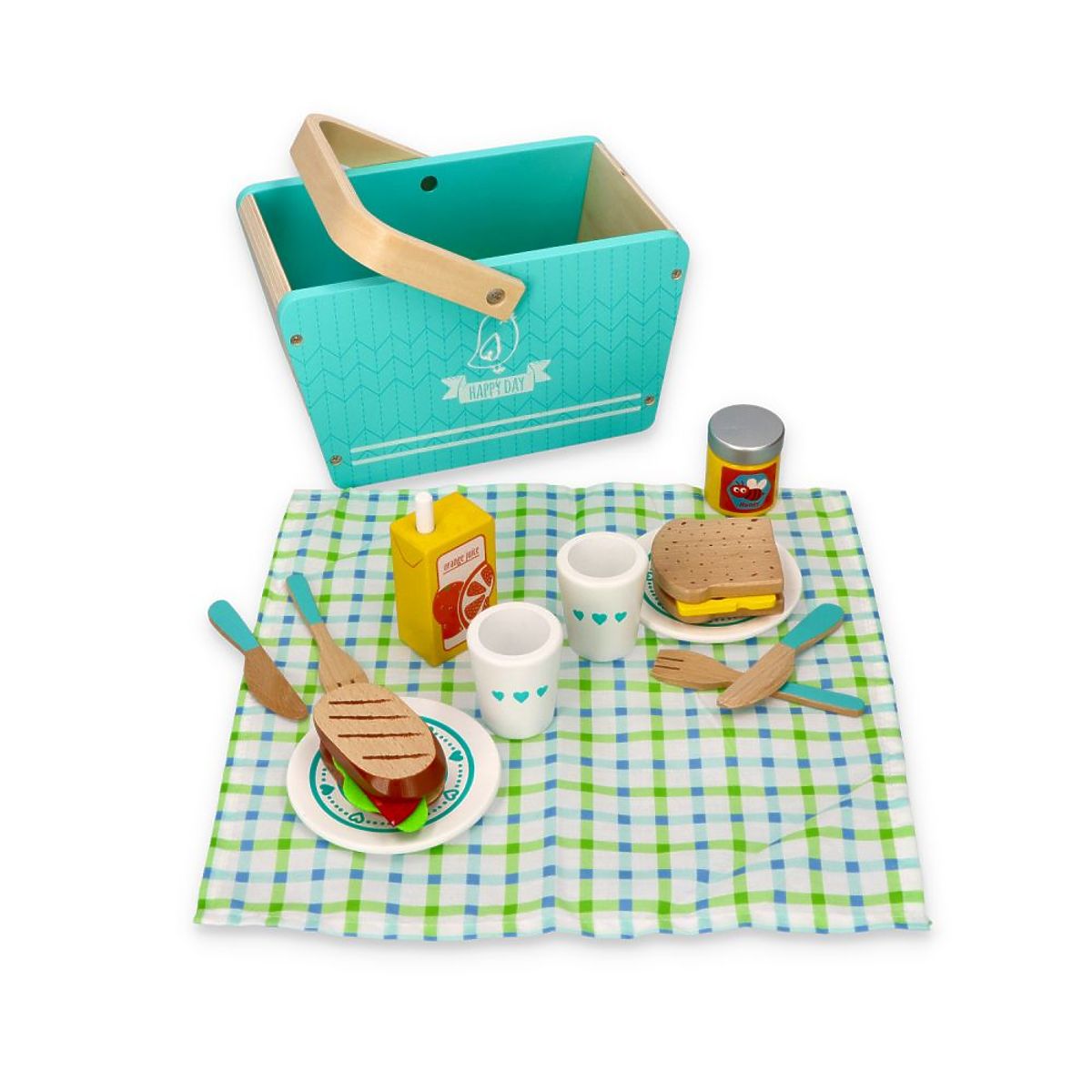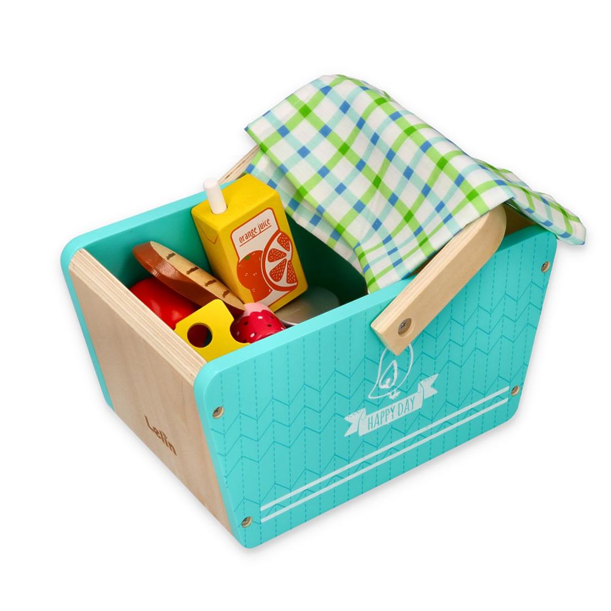 Celá sada je zabalená v krásnom košíku, ktorý je celý z dreva. Krásna mätová farba a potlač na boku dodávajú kúzlo. Ladiaca servítka, na ktorej možno rozložiť prvky, je tiež výhodou tohto produktu. Pozvite medvedíky a kamarátky na spoločný výlet za mesto, alebo si urobte piknik v izbe, aj keď počasie nepraje táboreniu.