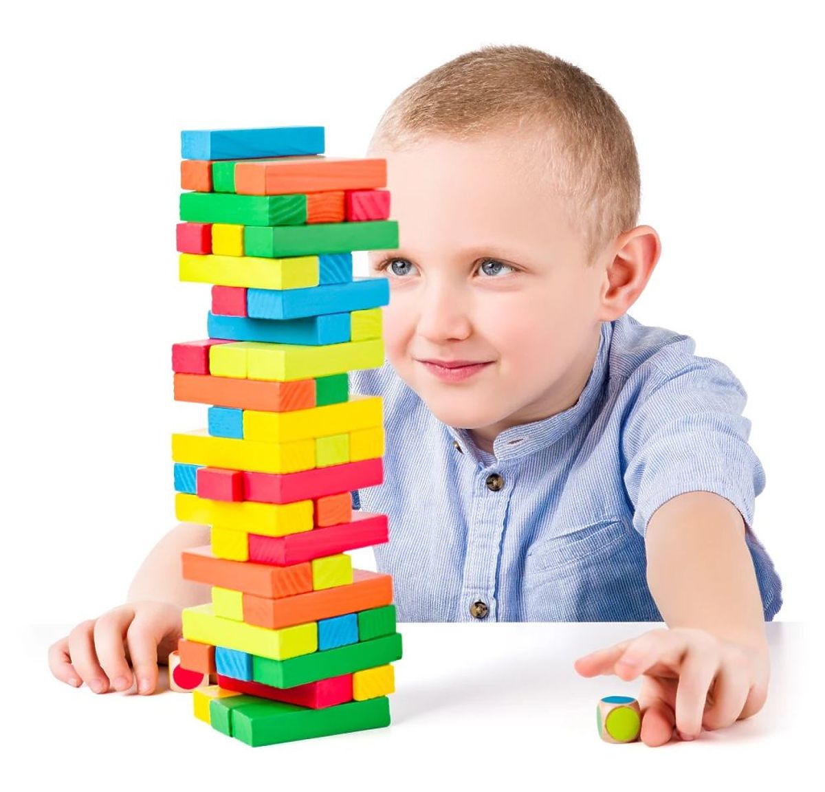 Hra veža je ideálny spôsob, ako tráviť čas s rodinou. Je to jedna z tých hier, ktorú radi hrajú všetci bez ohľadu na vek. Stačí postaviť vežu a potom z nej vyťahovať kocky. V farebnej verzii však nemôžete vytiahnuť ľubovoľný prvok. Sada obsahuje 2 kocky s farebnými stranami, ktoré zodpovedajú farbám kociek. Hod kockou rozhoduje, ktorú kocku je potrebné vytiahnuť. Kto spôsobí pád veže, prehráva. Čím ďalej, tým ťažšie. V tejto hre nezáleží na sile, ale na šikovnosti, koncentrácii a dôkladnom pozorovaní konštrukcie. Tu víťazí trpezlivosť a sústredenie, ale najdôležitejšia je predsa dobrá zábava a spoločne strávený čas s blízkymi.