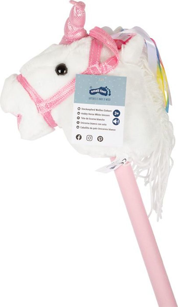 Predstavujeme vám roztomilého bieleho jednorožca na tyči s funkciou vydávania zvukov erdžania a cvalu. Tento fantastický koník je vyrobený z príjemného na dotyk plyšu. Celá rukoväť je tiež pokrytá príjemným materiálom, vďaka čomu deti častejšie siahajú po svojom obľúbenom priateľovi :)