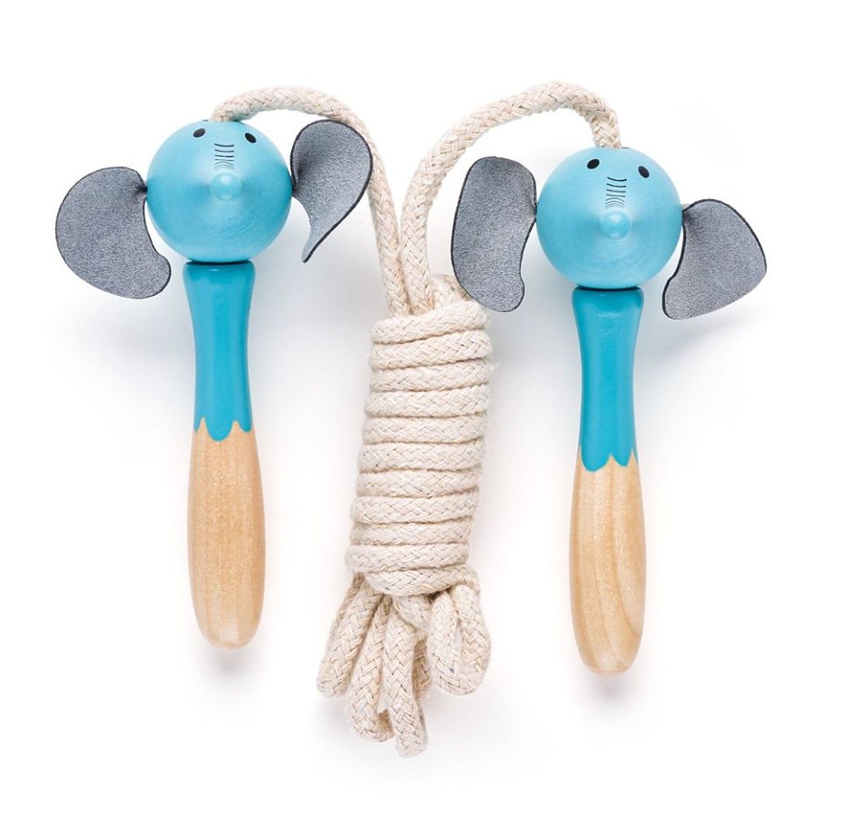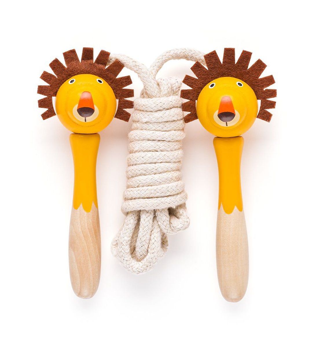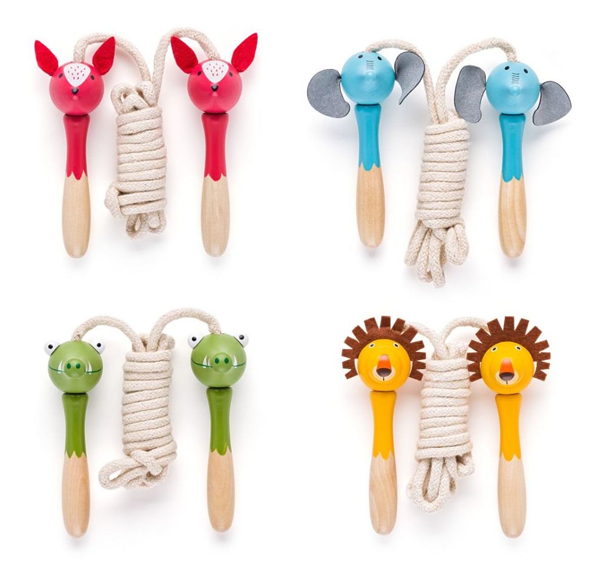 Každé švihadlo má rukoväť vyrobenú z lakovaného dreva v tvare zvieratka s plstenými doplnkami ako hriva leva alebo ušká jeleňa a látkový povraz.