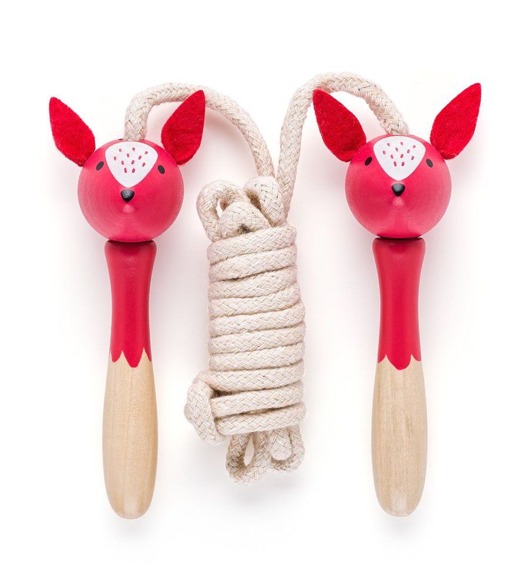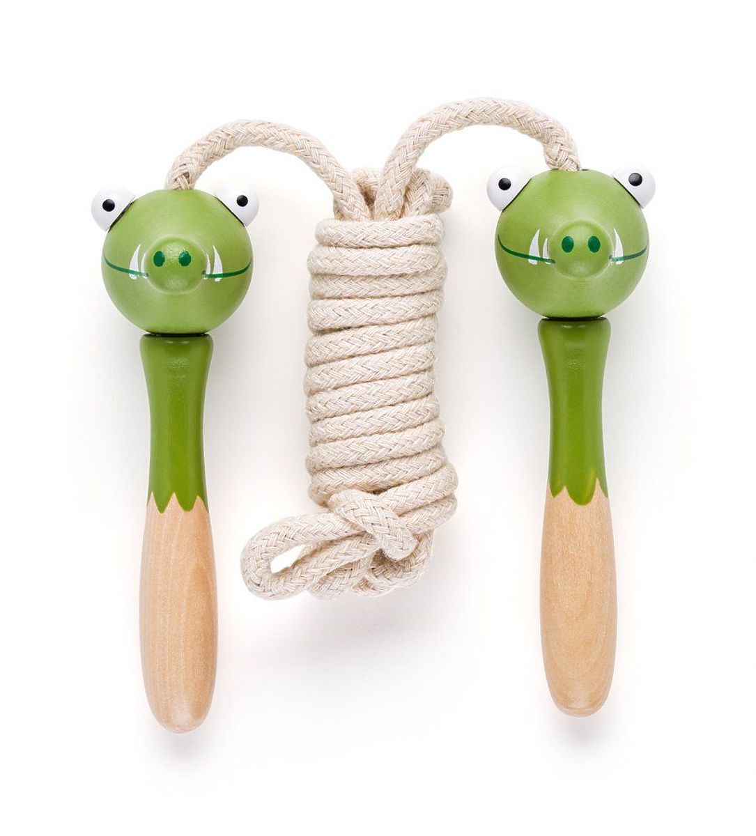Farebné švihadlá s drevenými rukoväťami v tvare veselých zvieratiek povzbudia k pohybovej aktivite a zlepšeniu kondície.