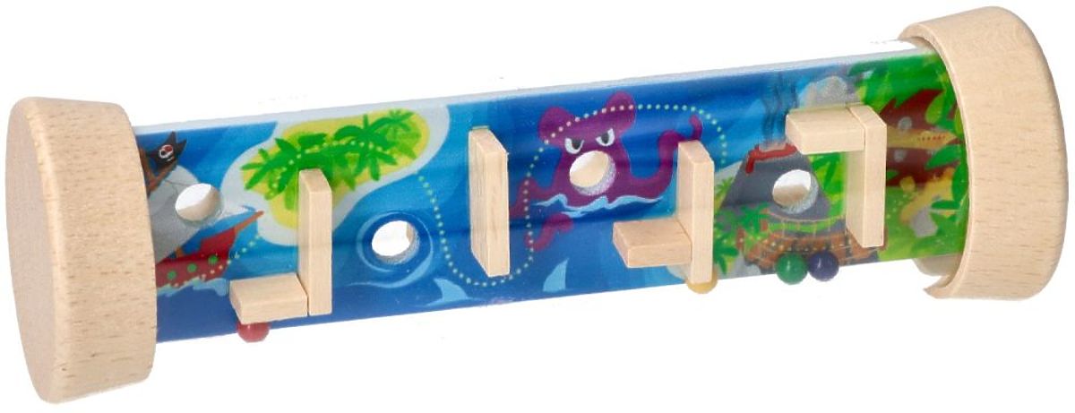 V priehľadnom valci je umiestnená doska so štyrmi dierkami a guľôčkami. Hra spočíva v manipulácii s valcom tak, aby všetky guľôčky spadli do dierok. Z každej strany je hra trochu iná kvôli vzoru na doske a inému okoliu dierok drevenými bariérkami. Navyše sú guľôčky v štyroch farbách a z jednej strany má každá dierka označenie farby guľôčky, ktorú je potrebné do nej vložiť. Z jednej strany je to teda trochu jednoduchšie, ale z druhej strany máme ďalšie sťaženie.