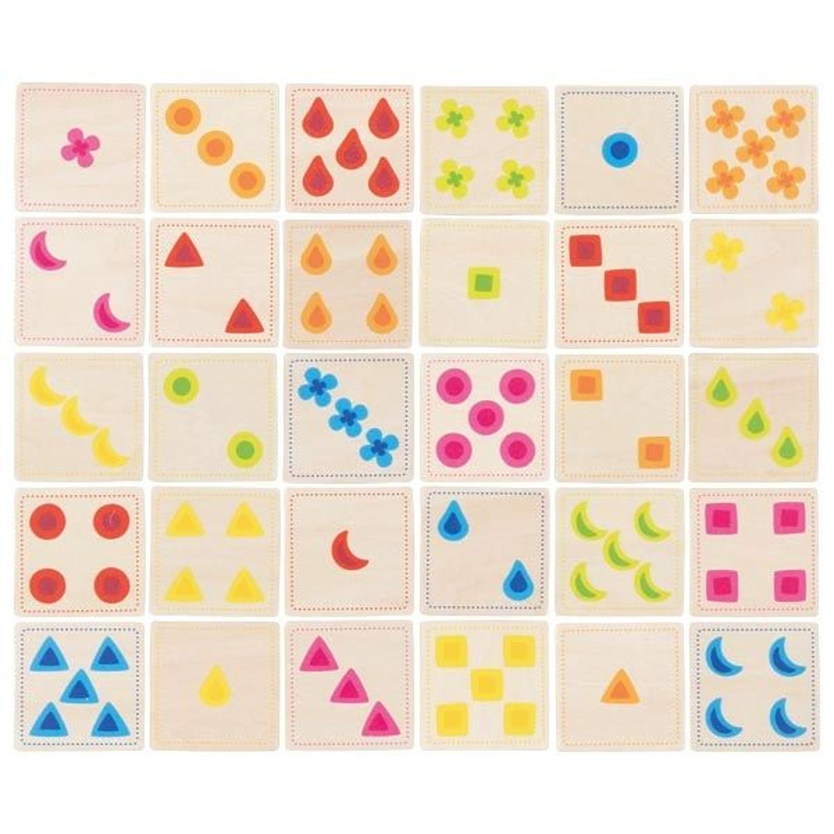 Hra spočíva v nájdení čo najväčšieho počtu párov, ale pozor, hľadáme páry podľa vopred stanoveného kľúča, a máme tu až tri možnosti. Hru začíname rozdelením drevených prvkov na polovicu. Jednu časť skladáme do kôpky s obrázkami dole. Druhú časť rozložíme náhodne na stole obrázkami hore. Pozor, hra začína. Z kôpky vyberieme prvú kartu a otočíme ju obrázkom hore. Čas štart, kto prvý nájde na stole pár, ten si ho berie. Páry môžeme nachádzať podľa troch rôznych kľúčov: