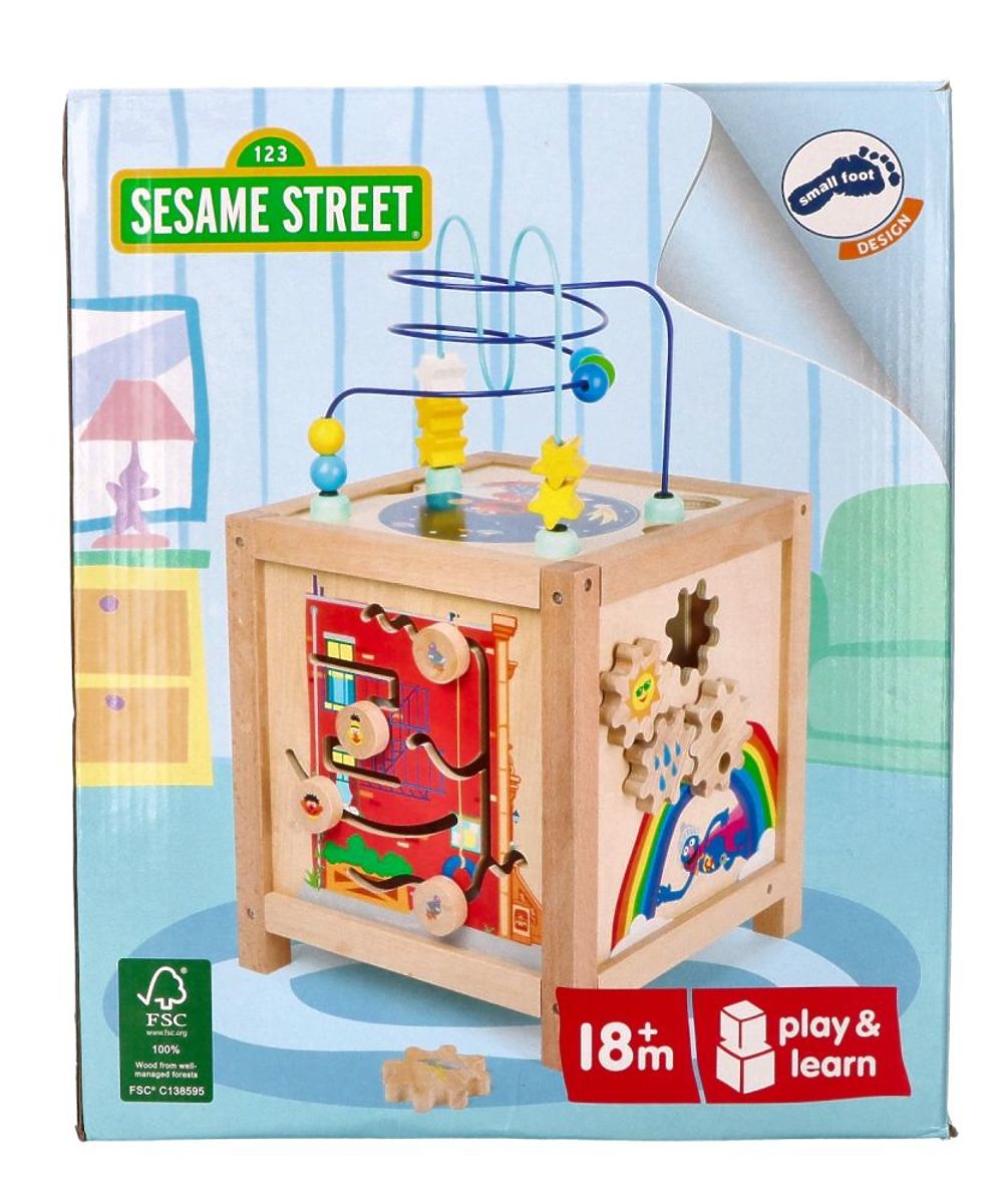 Fantastická aktívna kocka od známeho výrobcu hračiek Small Foot Design ponúka deťom mnoho možností rozvoja. Čo je však najdôležitejšie, tento produkt je vyrobený s postavičkami zo známej série "Sezamová ulica". Motorická kocka, ako kocka, sa skladá zo 6 strán, z ktorých 5 je s atrakciami. Nižšie vám predstavujeme každú stranu: