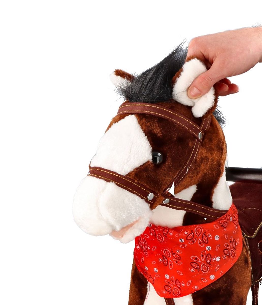 Ďalšou atrakciou sú jeho interaktívne vlastnosti! Stačí stlačiť jedno ucho a zaznie zvuk cválajúcich koňských kopýt. Po stlačení druhého ucha koník zaspieva veselú pesničku.