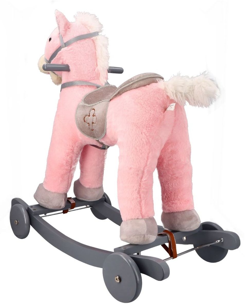 Ružový hojdací koník s kolieskami je naša nová ponuka hračky na dlhé roky. Vyrobený z silného plyšu, koník bude najlepším priateľom vášho dieťaťa. Hojdací koník je mimoriadne príjemný na dotyk. Je robustnejší než jeho ostatní kolegovia z našej ponuky. Jeho srsť pripomína zimný a teplý plášť. Skvelý spoločník na chladné večery ;-)