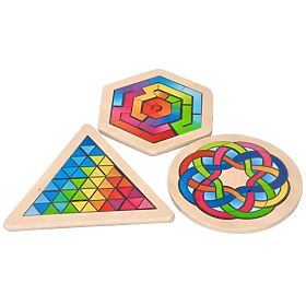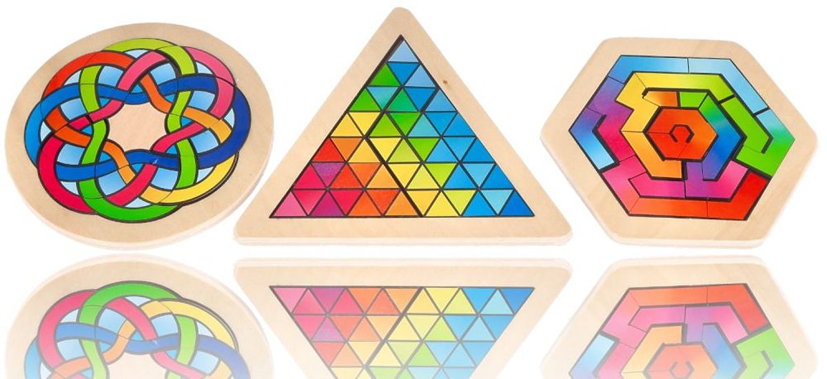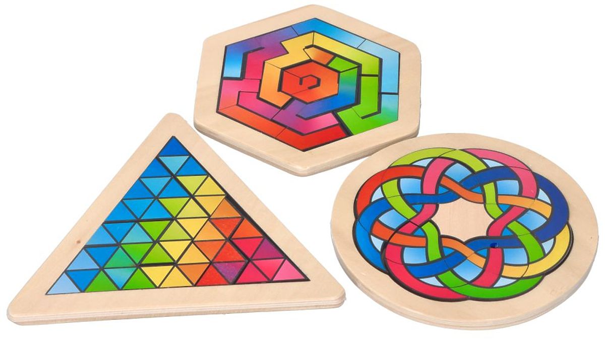 Séria skladačiek Tréner mozgu ponúka 3 elegantné typy puzzle, v ktorých je potrebné usporiadať prvky tak, aby vytvorili mozaiku zodpovedajúcu tvarom a farebnosťou. Každá z nich však predstavuje iný vzor a vyžaduje nové prehodnotenie puzzle: