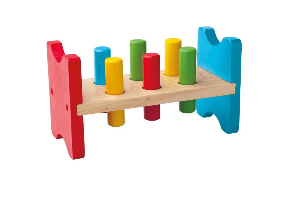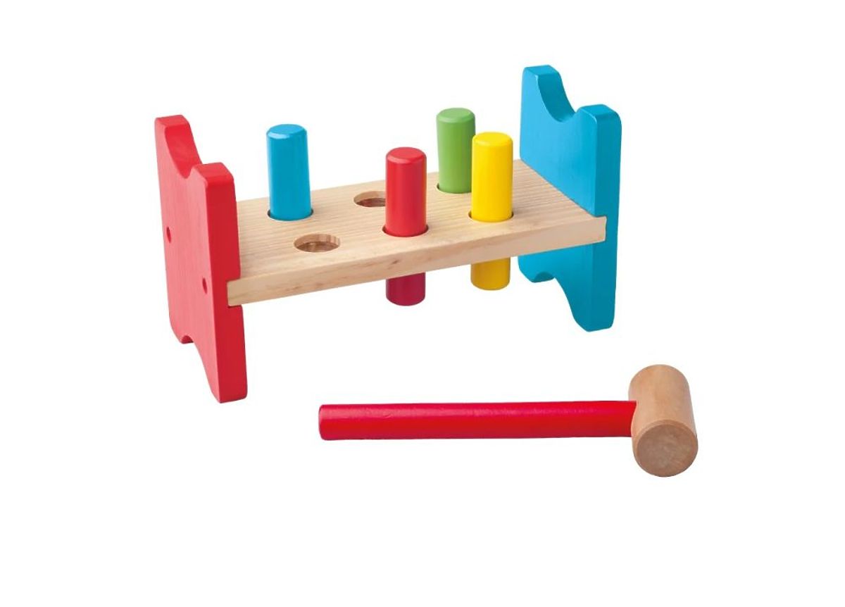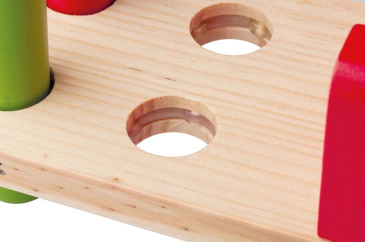 Drevená zatĺkačka s kladivkom a farebnými kolíkmi pre deti od 2 rokov. .. viac