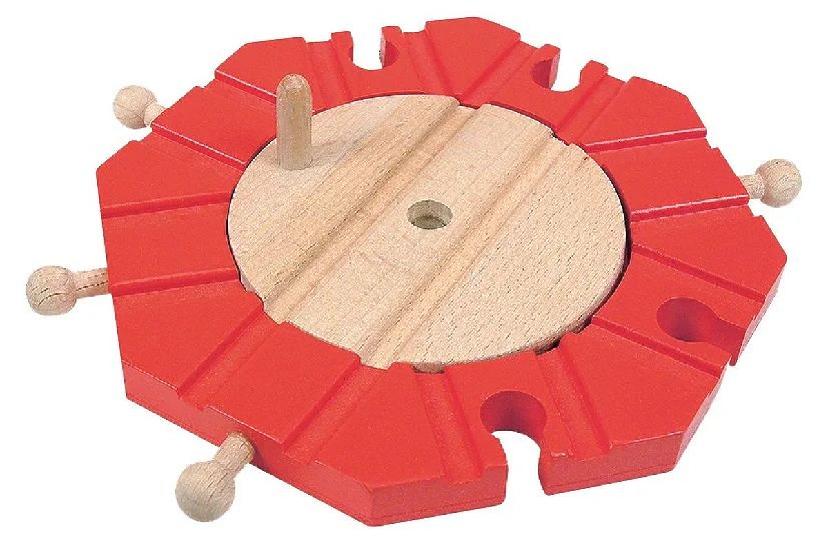 Produkt sa ľahko otáča, je vyrobený z lakovaného dreva. Má 4 kolíky a 4 nepravidelne rozmiestnené výrezy, takže možnosti spojenia s existujúcimi traťami sú neobmedzené.
