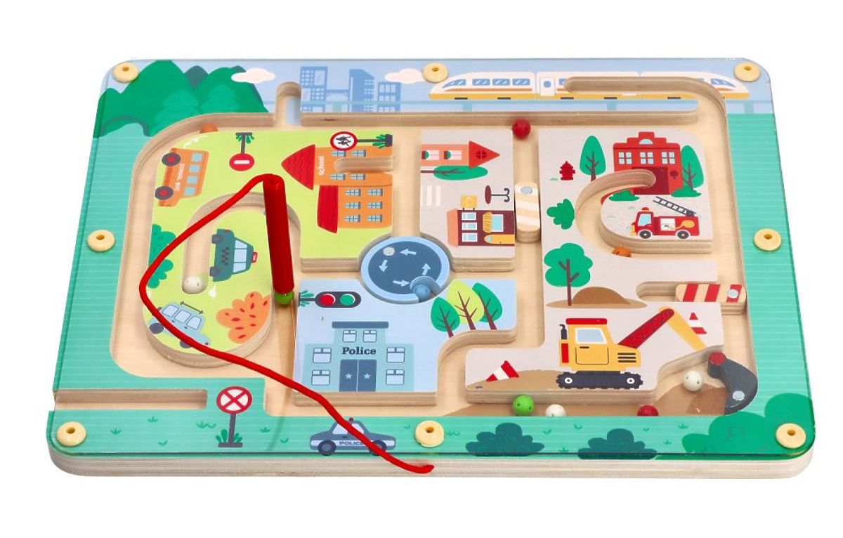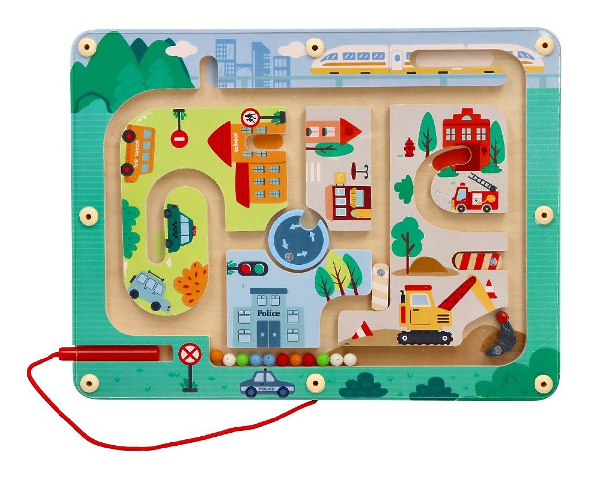 Nové magnetické bludisko Lelin prináša ešte viac zábavy a objavovania. V tejto magnetickej hračke ide o presúvanie guličiek bludiskom pomocou magnetickej tyčinky. Vďaka tomu dieťa rozvíja motorické schopnosti, ale predovšetkým sa skvele baví. V našom bludisku sú ukryté ďalšie atrakcie v podobe: dvoch závor, jedna vertikálna a druhá horizontálna, kyvadlového prvku z bagra uzatvárajúceho jeden roh a otočného prvku uprostred. Aby bolo možné guličky cez tieto prvky preniesť, je potrebné ich najprv otvoriť alebo otočiť. Vďaka takejto vzdelávacej hračke dieťa precvičuje mnoho užitočných zručností: