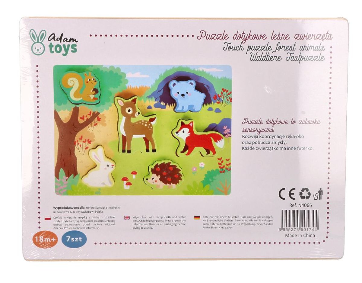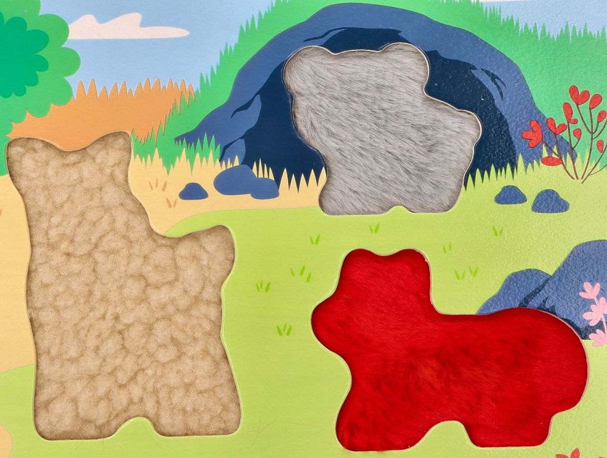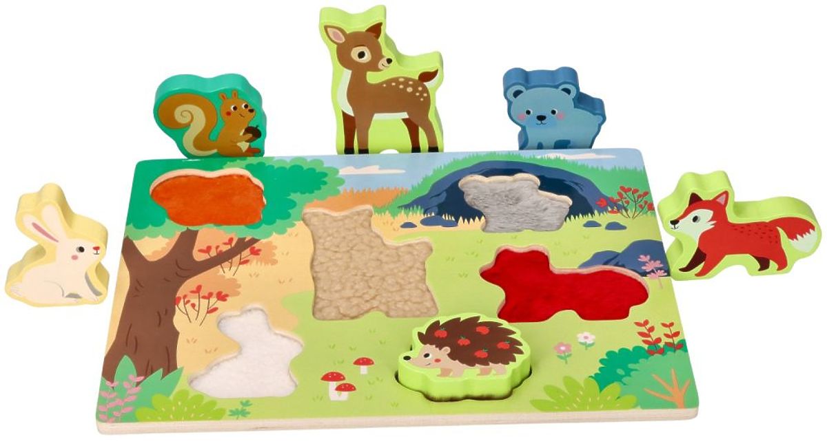 Vnútro každého otvoru pre puzzle je vyložené mäkkým materiálom, ktorého farba a textúra sa približuje srsti daného zvieratka. Navyše si deti môžu s kockami hrať samostatne a vytvárať z nich svoje vlastné príbehy a predstavenia. Hra s predmetmi rôznych textúr stimuluje nielen hmat, ale aj vizuálne vnímanie. Skladačka je vyrobená z lakovaného dreva v príjemnej farebnosti. Hračka výborne rozvíja detskú predstavivosť, učí koncentrácii a pozorovacím schopnostiam. Dieťa tiež precvičuje manuálne zručnosti, najmä prstíky.