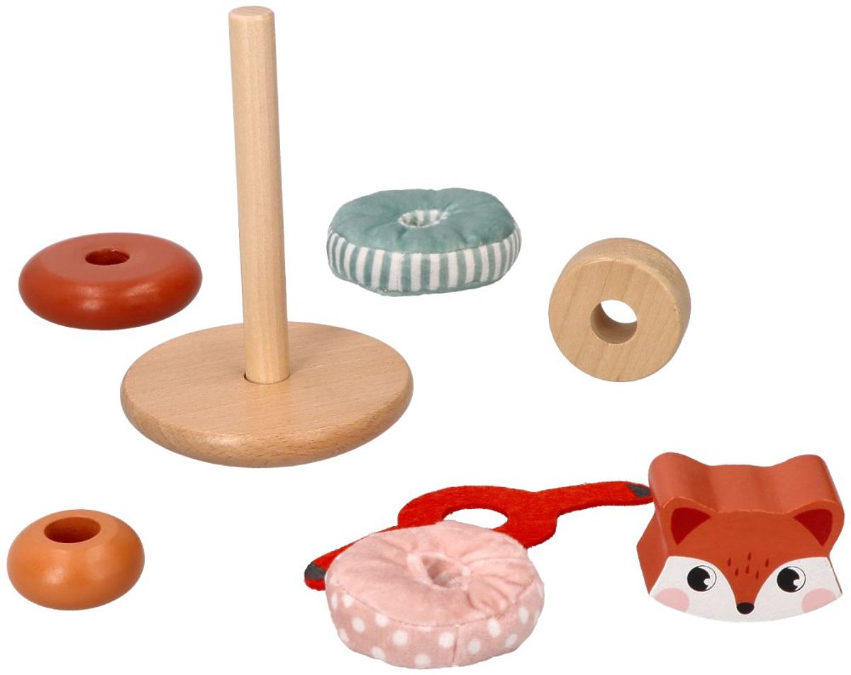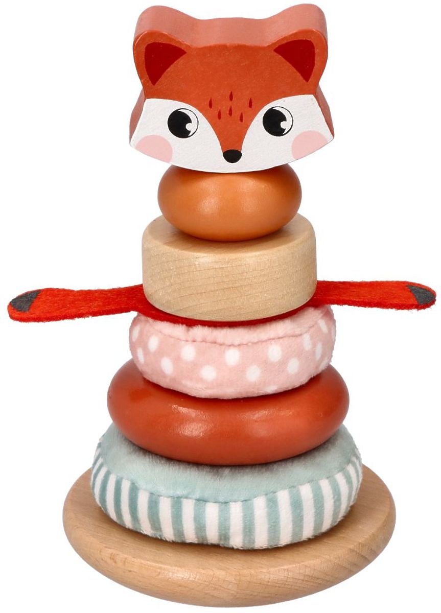 Hračka skvele rozvíja koordináciu ruka-oko a zlepšuje motoriku malých detských rúk. Najprv sa dieťa učí trafiť krúžkom na tyč, čo nie je vôbec jednoduché. Potom rozlišuje krúžky podľa veľkosti a prispôsobuje ich tak, aby vytvorili správny tvar pyramídy. Navyše sú krúžky vyrobené z dreva, mäkkých a príjemných materiálov (ružová a modrá) a filcu (líščie labky). Vďaka použitiu rôznych materiálov dieťa rozvíja zmyslové vnímanie rúk. Rôzne textúry a dotykové vnemy sú dôležitým poznávacím prvkom.
