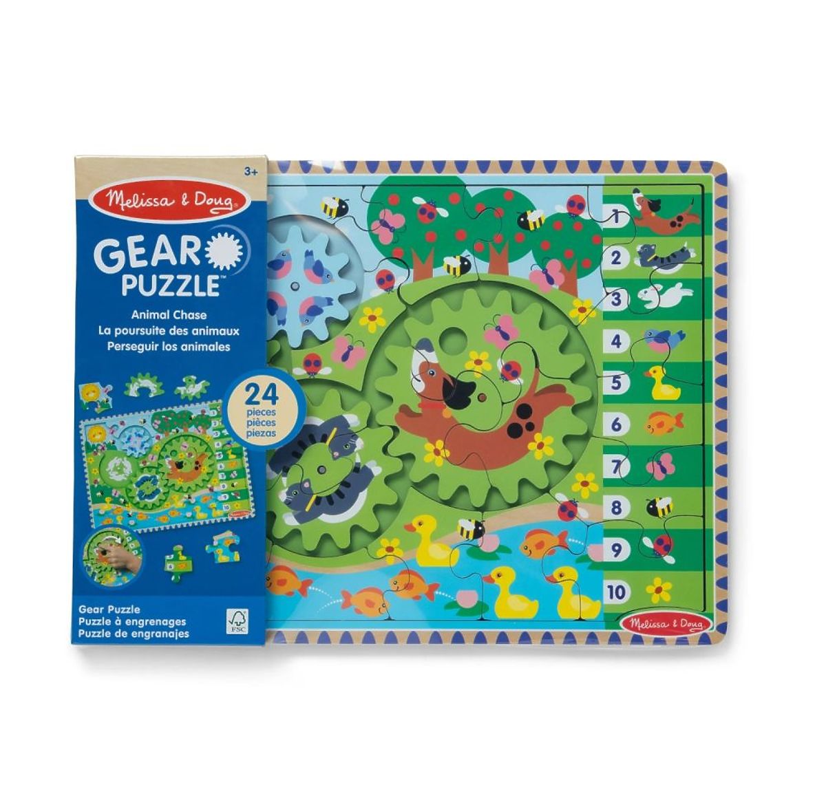 Drevená skladačka s pohyblivými ozubenými kolesami a zvieratkami. .. viac