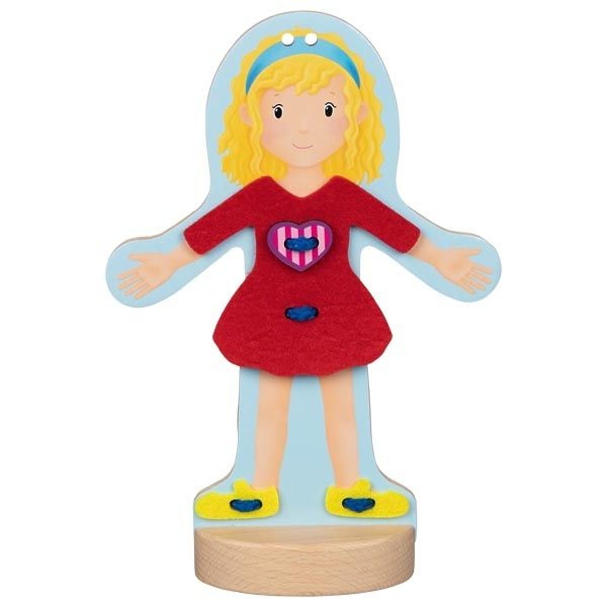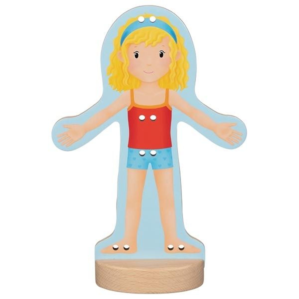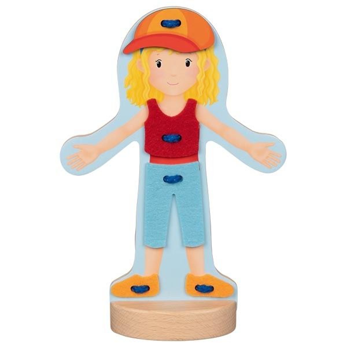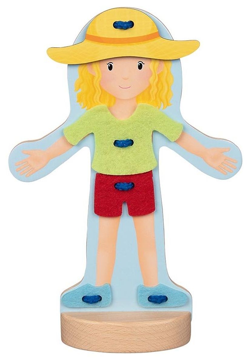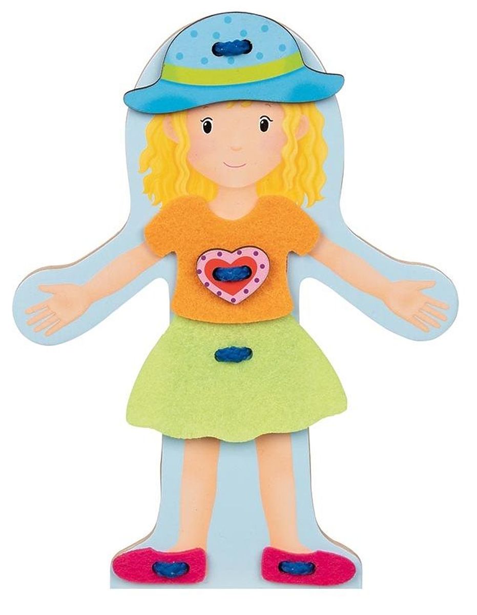 Zoznámte sa s Justynkou. Justynka rada trávi čas vonku a robí veľa zaujímavých vecí na záhrade. Justynka tiež miluje pečenie lahodných koláčov, ale ako to býva v kuchyni a na záhrade, často sa pri tom zašpiní. Preto často mení oblečenie ;-) Vďaka šnurovaniu dieťa precvičuje presnosť ruky, pohybovú koordináciu a navyše šnurovanie a manuálna práca tohto typu pozitívne ovplyvňujú rozvoj mozgu. Dieťa sa navyše nenudí, pretože môže voľne experimentovať a prezliekať figúrku mnohými spôsobmi.