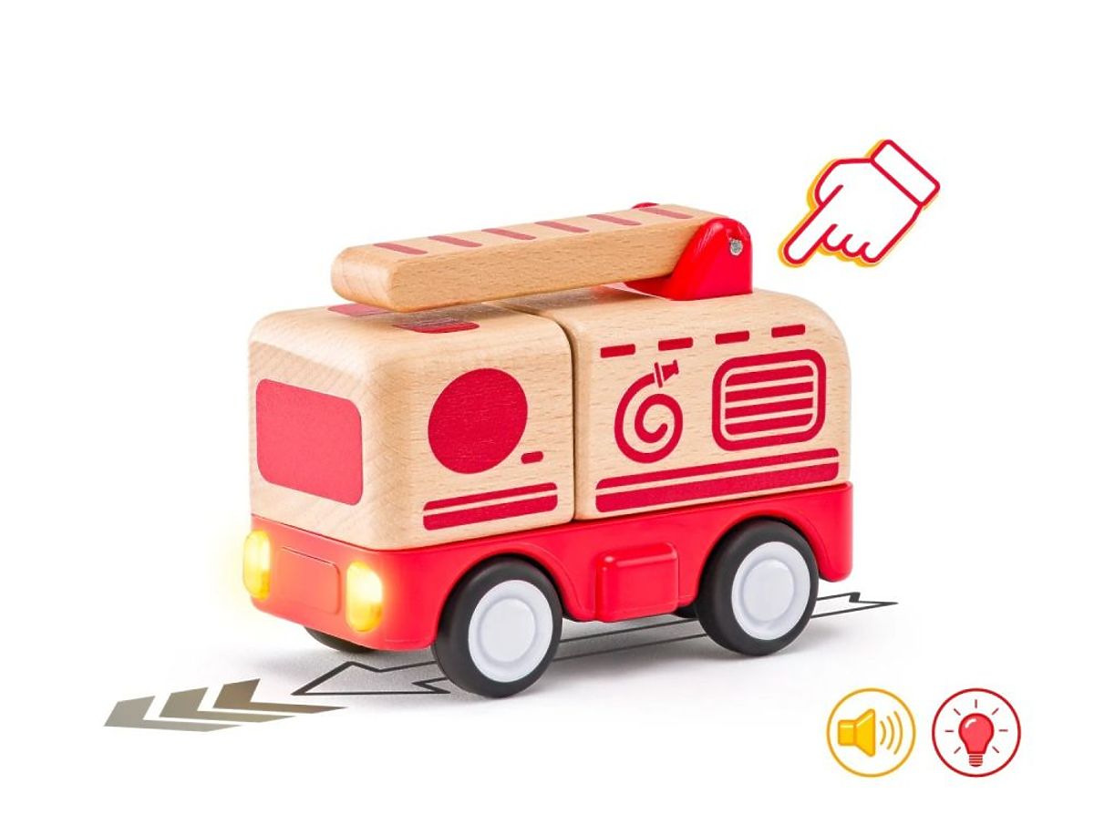 Nová kolekcia vozidiel značky Woody sú autíčka prispôsobené svojou veľkosťou malým ručičkám. Vyrobené z dreva s plastovými prvkami, natreté farbami bezpečnými pre deti. Majú mäkké gumové pneumatiky, vďaka čomu majú dobrú priľnavosť k povrchu. Po stlačení autíčka sa rozsvietia svetlá, počujeme signál a vozidlo sa začne rozbiehať.