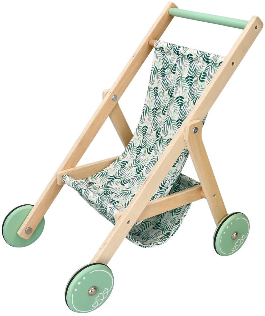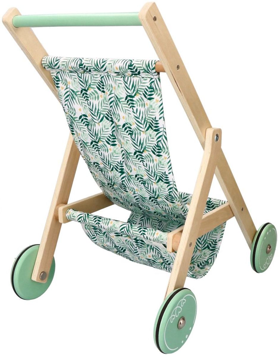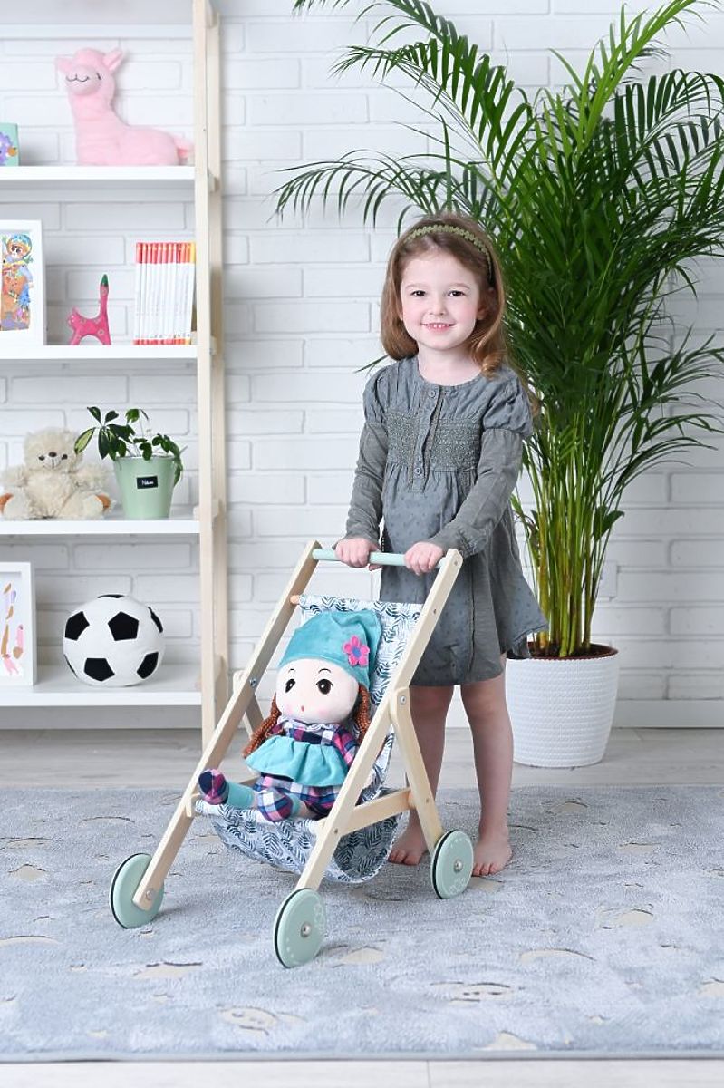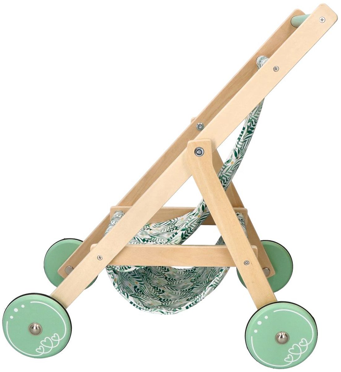 Ľahký, drevený kočík pre bábiky je novým návrhom od AdamToys na letné prechádzky malého dieťaťa s obľúbenými bábikami. Odteraz sa prechádzky stanú neobyčajnou atrakciou vďaka roztomilému vzhľadu kočíka a jeho ľahkej konštrukcii. Kočík sa tlačí veľmi hladko vďaka veľkým kolesám s gumovými protišmykovými pásikmi a nízkej hmotnosti. Kočík je vyrobený z dreva s mätovými akcentmi na kolesách a rukoväti. Bábika alebo medvedík môže byť usadený na sedadle s krásnymi zelenými vetvičkami. Celkový vzhľad je veľmi pôvabný a určite pritiahne nejeden pohľad na promenáde a ihrisku.