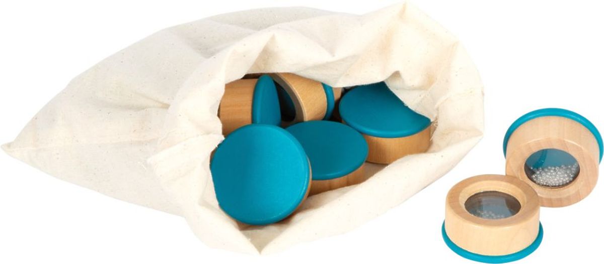 Cieľom tejto zmyslovej hry je rozpoznávanie, pomenovanie a spájanie do párov zodpovedajúcich valcov na základe počúvania ich zvukov. 16 drevených krabičiek je naplnených rôznymi materiálmi, napr.: drevenými guľôčkami, kovovými guľôčkami alebo plastovými korálkami, ktoré pri zatrasení vydávajú rôzne zvuky. Vďaka priehľadným okienkam na spodnej strane nádob môžete skontrolovať ich obsah. Hra je určená pre 1-4 hráčov. Po skončení hry je možné drevené krabičky uložiť do praktického bavlneného vrecka.