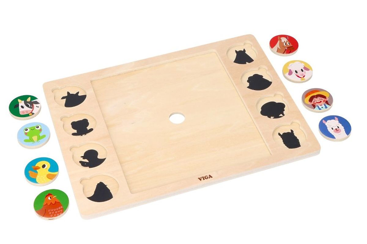 Hra by mala začať zostavením 9-dielnej skladačky umiestnenej uprostred. Potom môže dieťa priradiť 8 okrúhlych puzzlí k zodpovedajúcim tieňom na doske. Táto úloha rozvíja manuálne zručnosti a koordináciu, ale aj logické myslenie. Po správnom priradení všetkých prvkov môže dieťa pomenovať jednotlivé zvieratká a nájsť ich na veľkom zloženom obrázku. Je to vynikajúci spôsob, ako rozvíjať slovnú zásobu a budovať schopnosti logického myslenia.