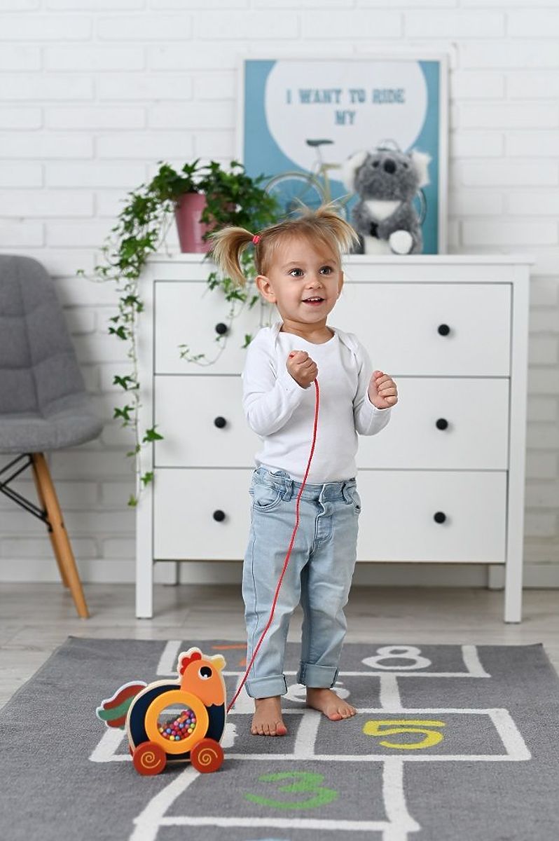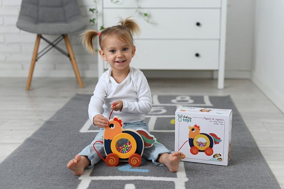 Tento sympatický drevený kohútik nielenže poskytne dieťaťu mnoho možností na hru, ale tiež podporí rozvoj pohybovej koordinácie a motoriky. Deti rady niečo za sebou ťahajú a čím viac (a hlasnejšie) sa deje, tým častejšie a radšej sa naše ratolesti pokúsia o samostatnú chôdzu.