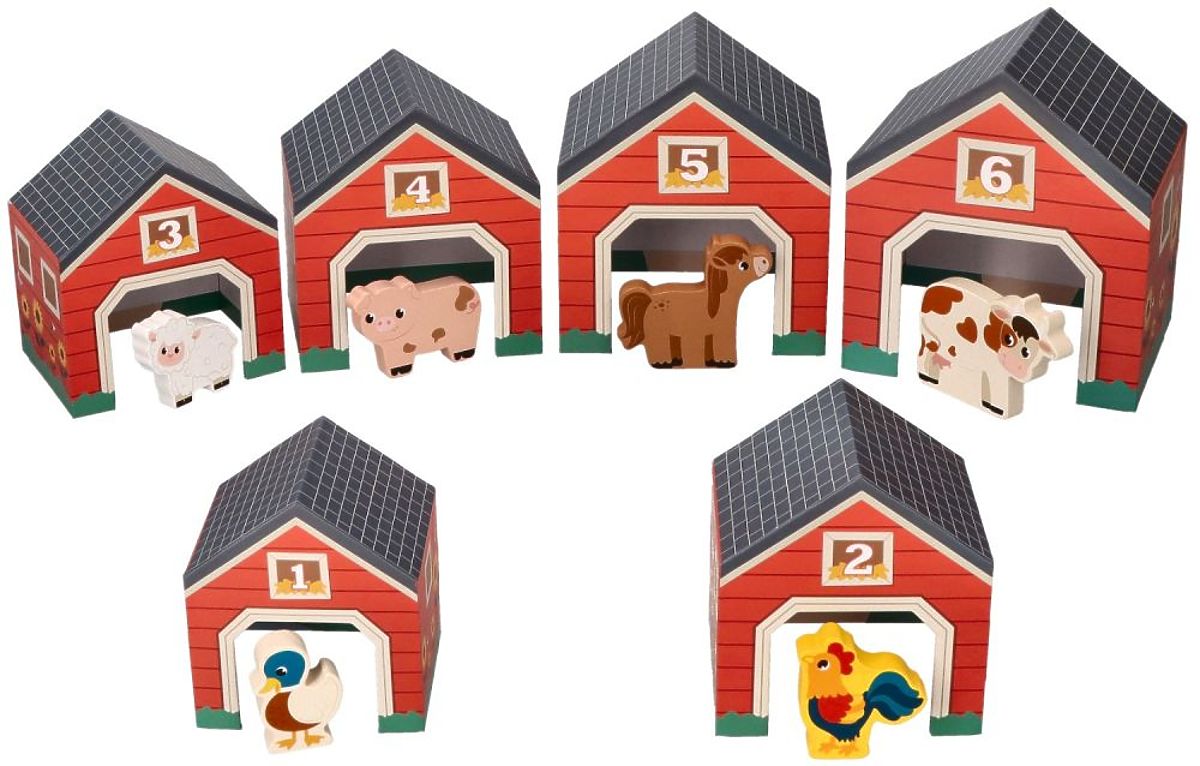 Sada sa skladá zo 6 domčekov-stodôl a zodpovedajúcich 6 figúrok zvierat.